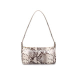 • Exterior Details: Gold Hardware, Croc Print, Adjustable Shoulder Strap, Cylinder Shape