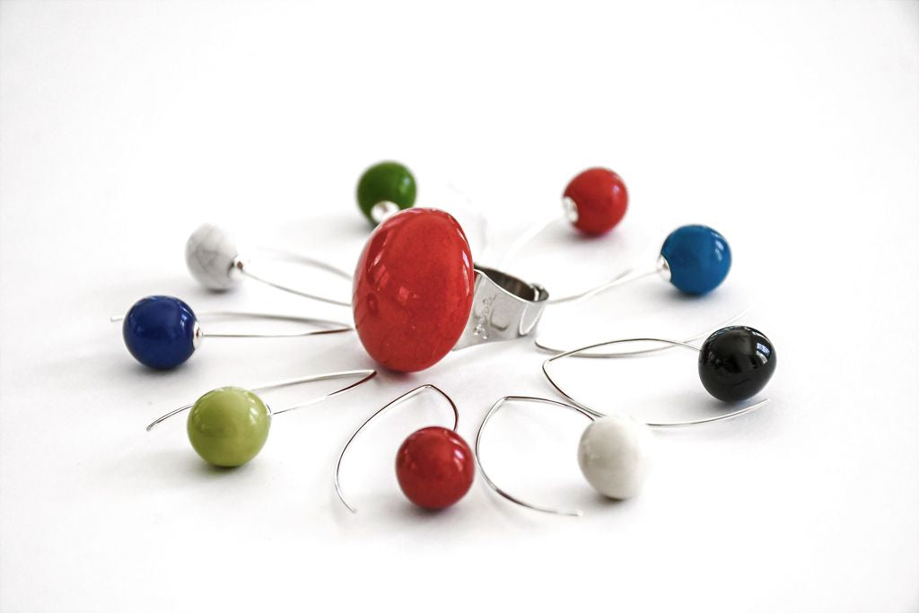 Twice baked handmade ceramic jewels cooked in high quality, vibrant enamel colors.