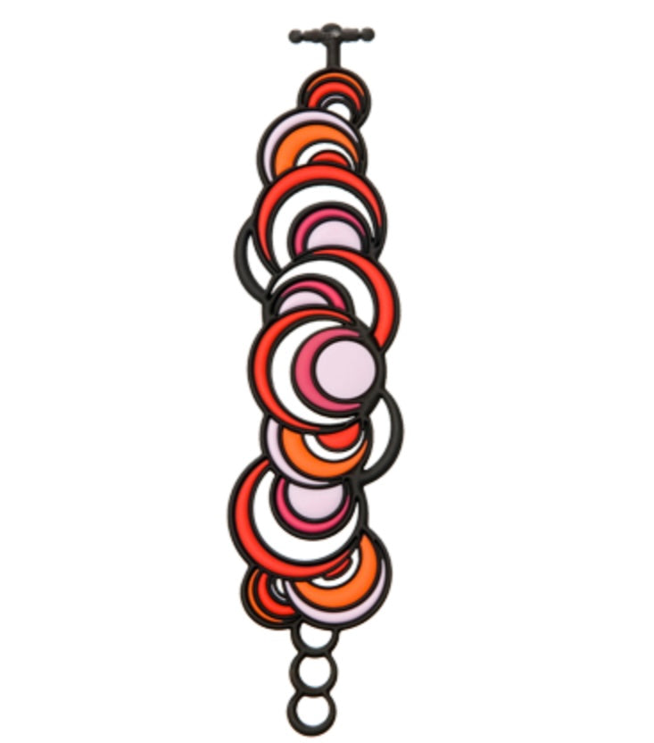 Step into a groovy mood straight from the 70s with these undulating circles around your neck. Succumb to a colorful fever with a hint of bohemian chic