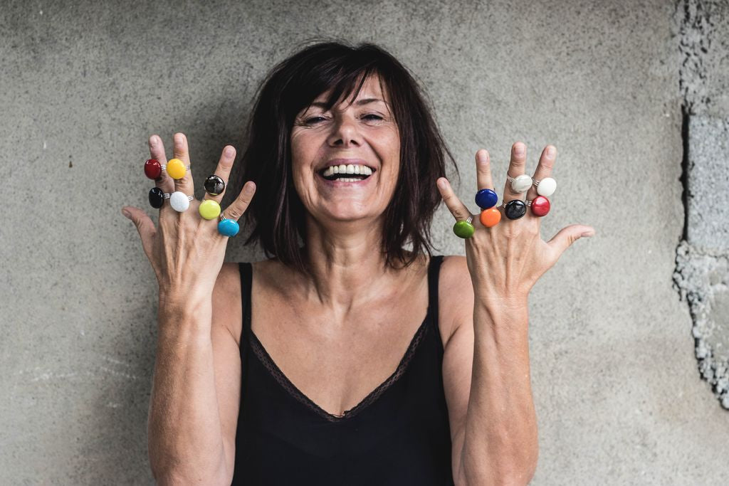 Batucada An artistic collection of twice baked ceramic jewels coated in high quality vibrant enamel colors.