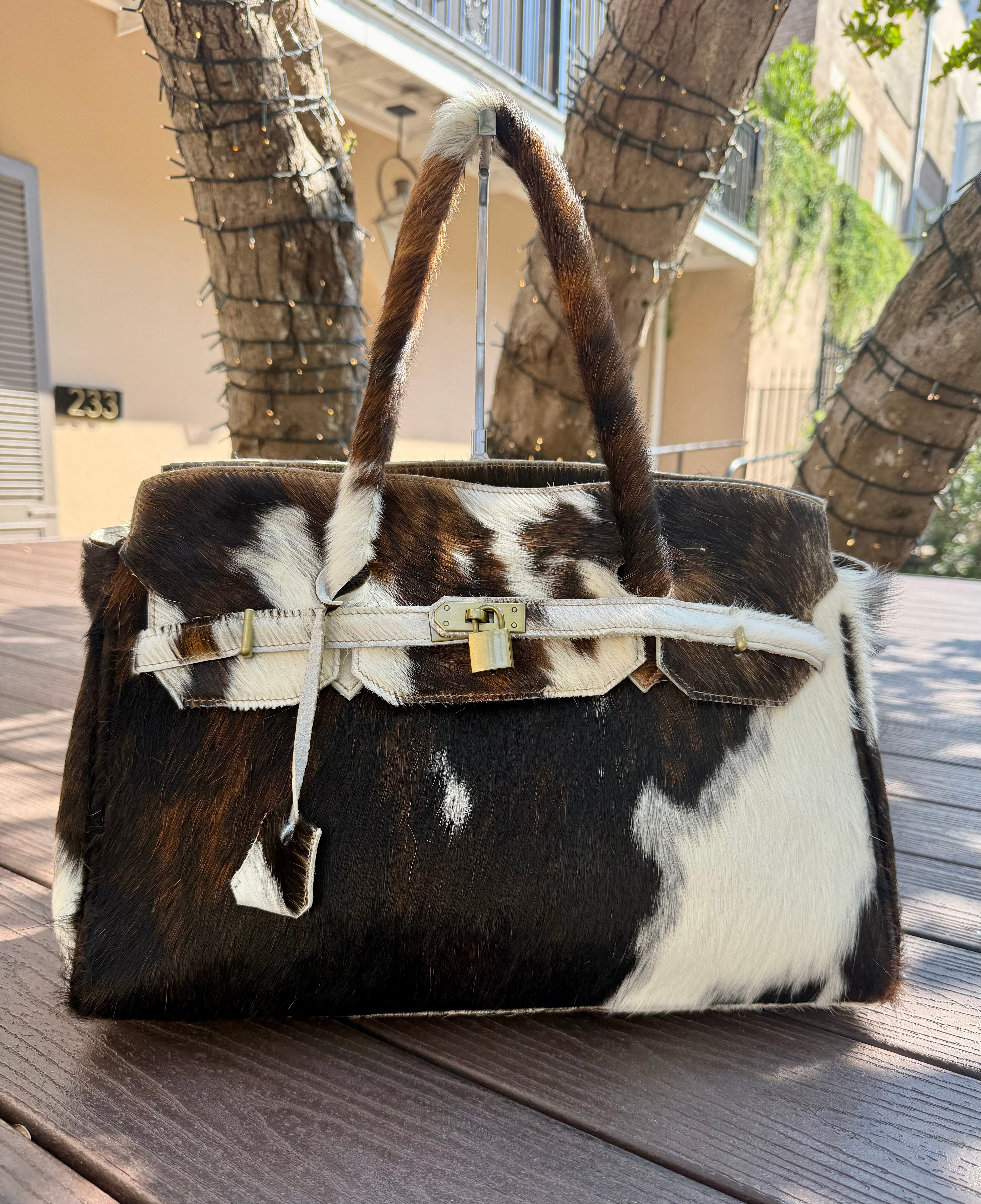 This beautiful satchel from Charlie’s Leather features luxurious hair-on cowhide. Handcrafted in Argentina, each of these unique handbags is sure to turn heads!