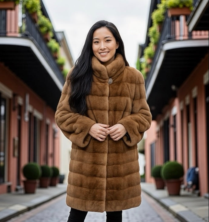 This beautiful knee length coat from Chosen Furs features luxurious mink fur.