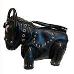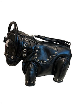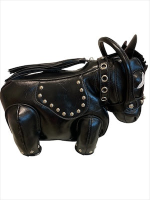 Adorable PU leather pony shaped handbag. Stud accents on the harness and feet. Top zipper with a roomy inside. Crossbody leather strap is included.