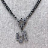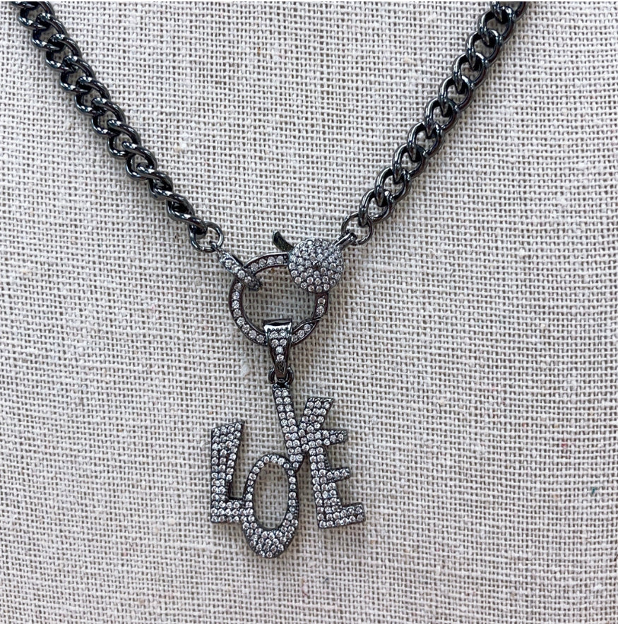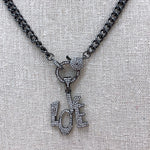 This beautiful LOVE necklace by Treasure Jewels is black plated with cubic zirconia crystals. This statement piece is sure to complete your outfit whether it’s for a day at the office or a girls night out. This necklace has been protected with a special seal to ensure long lasting wear and is lead and nickel compliant.