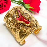 Ancient Bazaar Gold Plated Brass Cuff with Coral