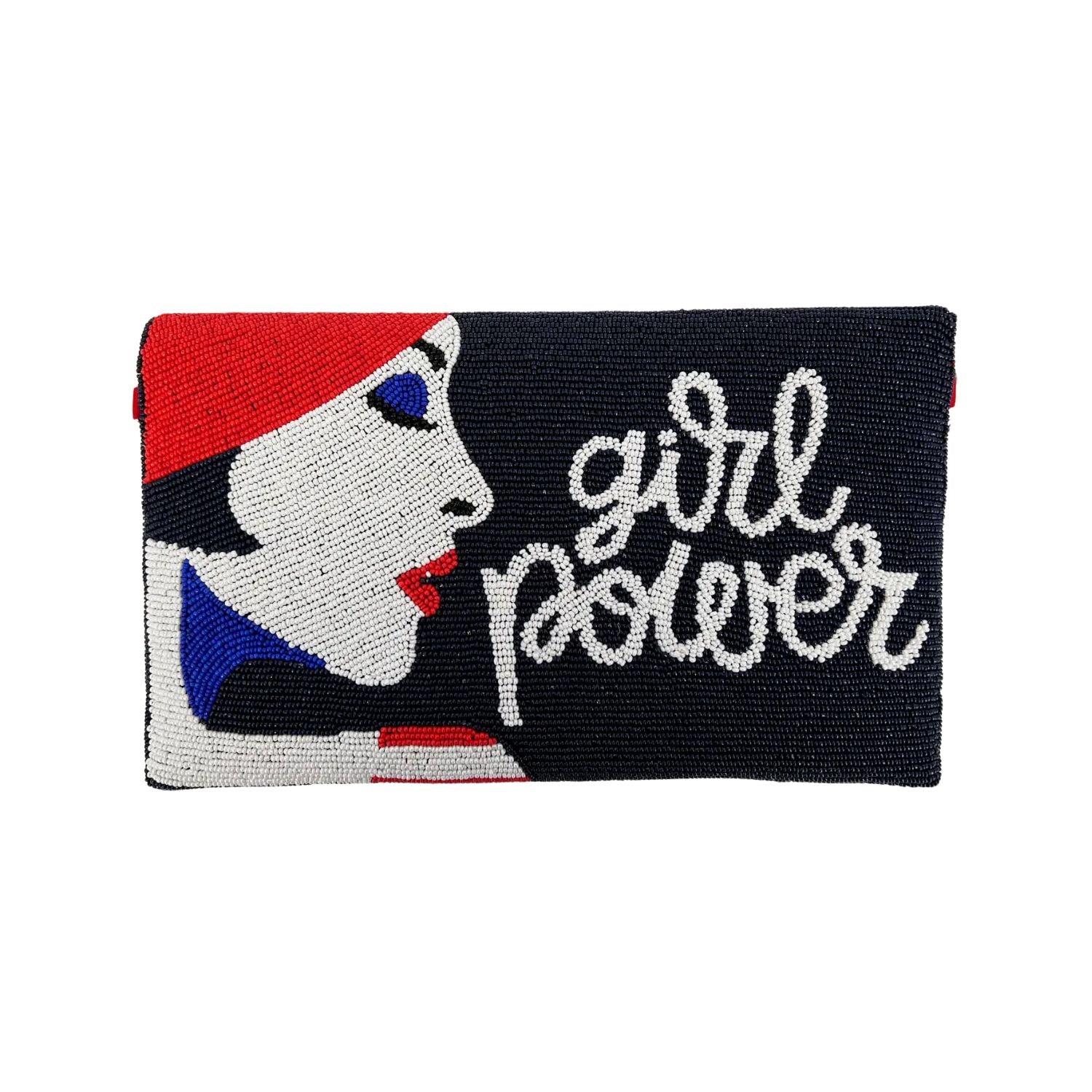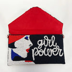 Elevate your outfit with this exquisite Girl Power Beaded Clutch Handbag—a true celebration of modern femininity and artistic craftsmanship. Beautifully hand-beaded, this clutch features a striking profile of a woman rendered in bold, elegant colors, complemented by the empowering “girl power” mantra. The refined palette of black, white, red, and blue creates a timeless statement piece that seamlessly blends contemporary art with classic sophistication.