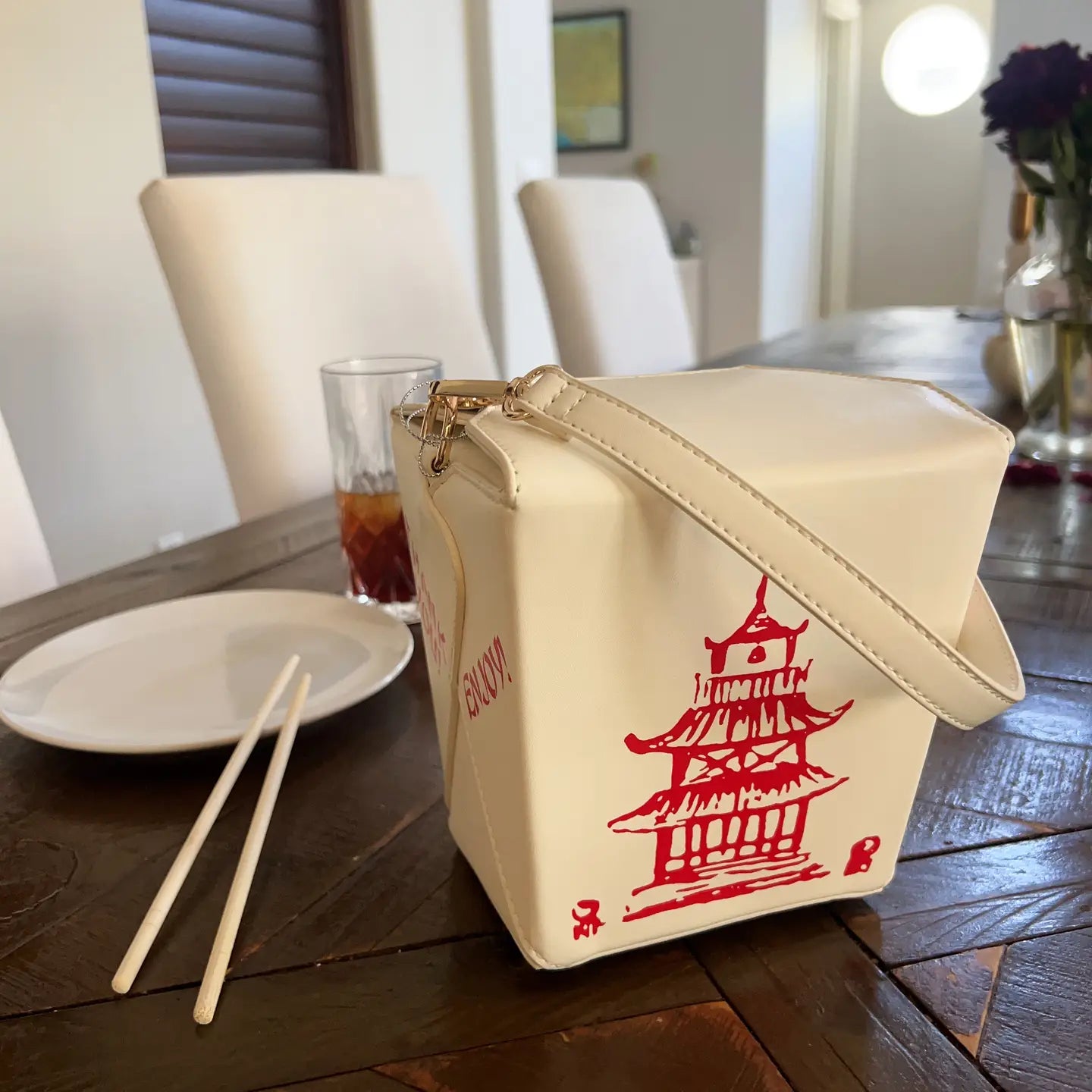 Serving looks, not just noodles! The Takeout No Doubts Crossbody is your new go-to for spicing up any outfit with a dash of fun. Whether you're craving bold fashion or just love a quirky twist, this Chinese takeout box-inspired bag delivers delicious style with zero doubts.  From casual brunches to nights out under neon lights, it's the perfect conversation starter. Lightweight, roomy, and topped with a fortune of charm, it’s fashion you can’t help but carry everywhere. Don’t wait for takeout — grab this look to-go!