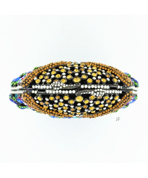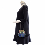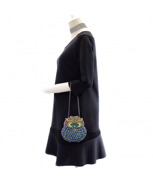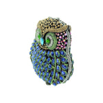 Crystal embellished blue and green owl handbag with optional drop-in strap.