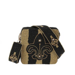 Intricate beadwork, featuring the iconic Fleur De Lis. Beautiful beaded strap is included.