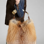 • Gold fox fur handbag