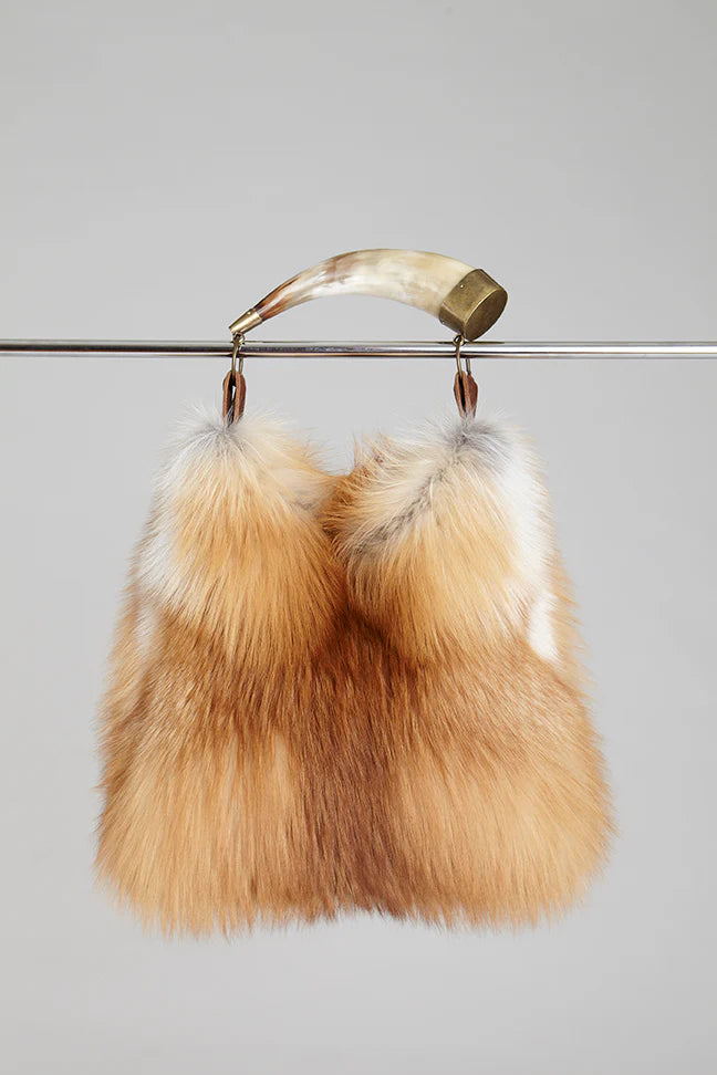 Make a statement and upgrade your look with this natural Saga gold fox fur handbag, designed with a unique cow horn as its handle.