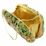 crystal embellished jungle themed animal clutch handbag with optional strap open inside detail