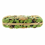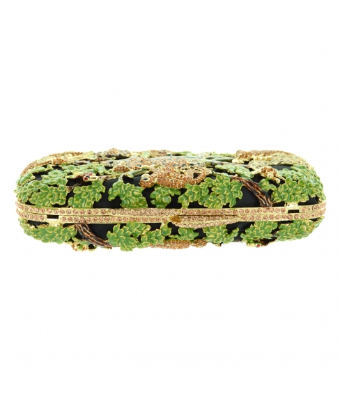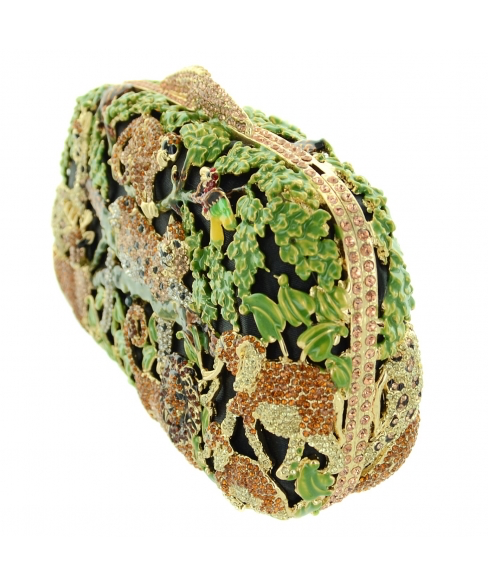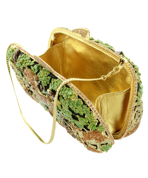 Fun and fabulous crystal embellished jungle themed clutch handbag with optional drop-in chain. Go wild on your next night out with this unique bag.