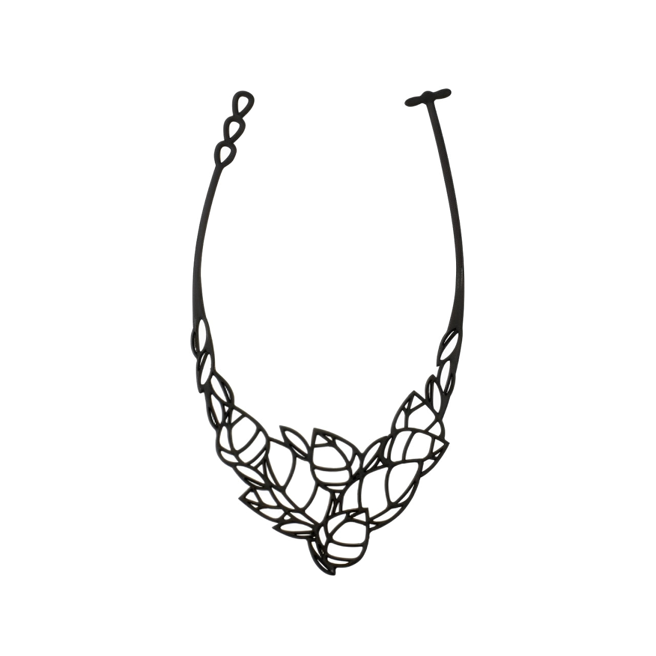 Acacia plant lead inspired necklace in black made from recycled materials.