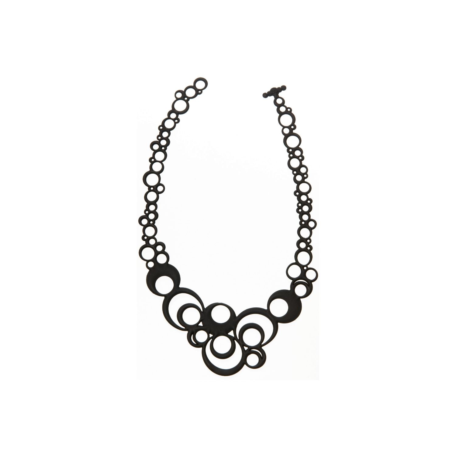 Black bubble inspired necklace made from recycled and sustainable materials. Silicon-free, latex-free, and nickel-free.