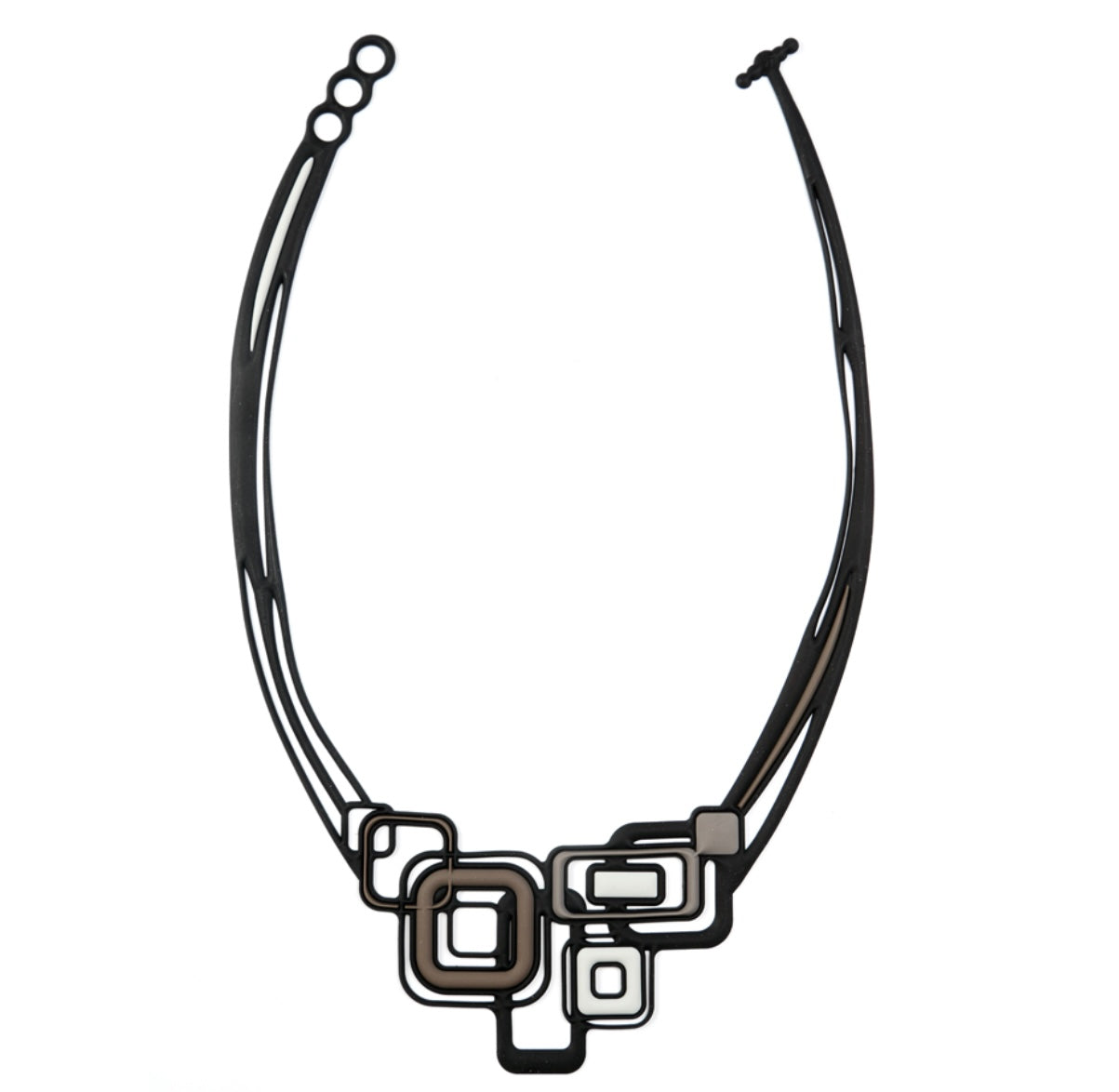 The elegant and unique designs of our Pythagoras collection offers a necklace with complex geometric shapes that combine purple and red or grey tones, allowing you to take your look to another level of mathematics. This piece is anything but square…enhance your look. Batucada jewelry is inspired by nature and made from 100% recyclable materials.
