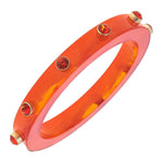 Make a statement wherever you go with the Renee Resin and Rhinestone Bangle! This stylish bangle is made of resin and rhinestones for maximum sparkle and sophistication. Its vibrant colors make it the perfect piece to mix & match for out-of-this-world outfits. Stack it for a unique look, or wear it alone for a show-stopping statement! Get ready to shine! DETAILS: * Resin Material with Rhinestone Accents * 2.5” Diameter Care Instructions * Remove jewelry before showering, washing hands, swimming, exercising, or applying any lotions or perfumes * Avoid contact between your jewelry and soaps, lotions, perfumes, hairspray, and cleaning products