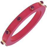 Make a statement wherever you go with the Renee Resin and Rhinestone Bangle! This stylish bangle is made of resin and rhinestones for maximum sparkle and sophistication. Its vibrant colors make it the perfect piece to mix & match for out-of-this-world outfits. Stack it for a unique look, or wear it alone for a show-stopping statement! Get ready to shine! DETAILS: * Resin Material with Rhinestone Accents * 2.5” Diameter Care Instructions * Remove jewelry before showering, washing hands, swimming, exercising, or applying any lotions or perfumes * Avoid contact between your jewelry and soaps, lotions, perfumes, hairspray, and cleaning products