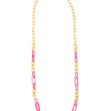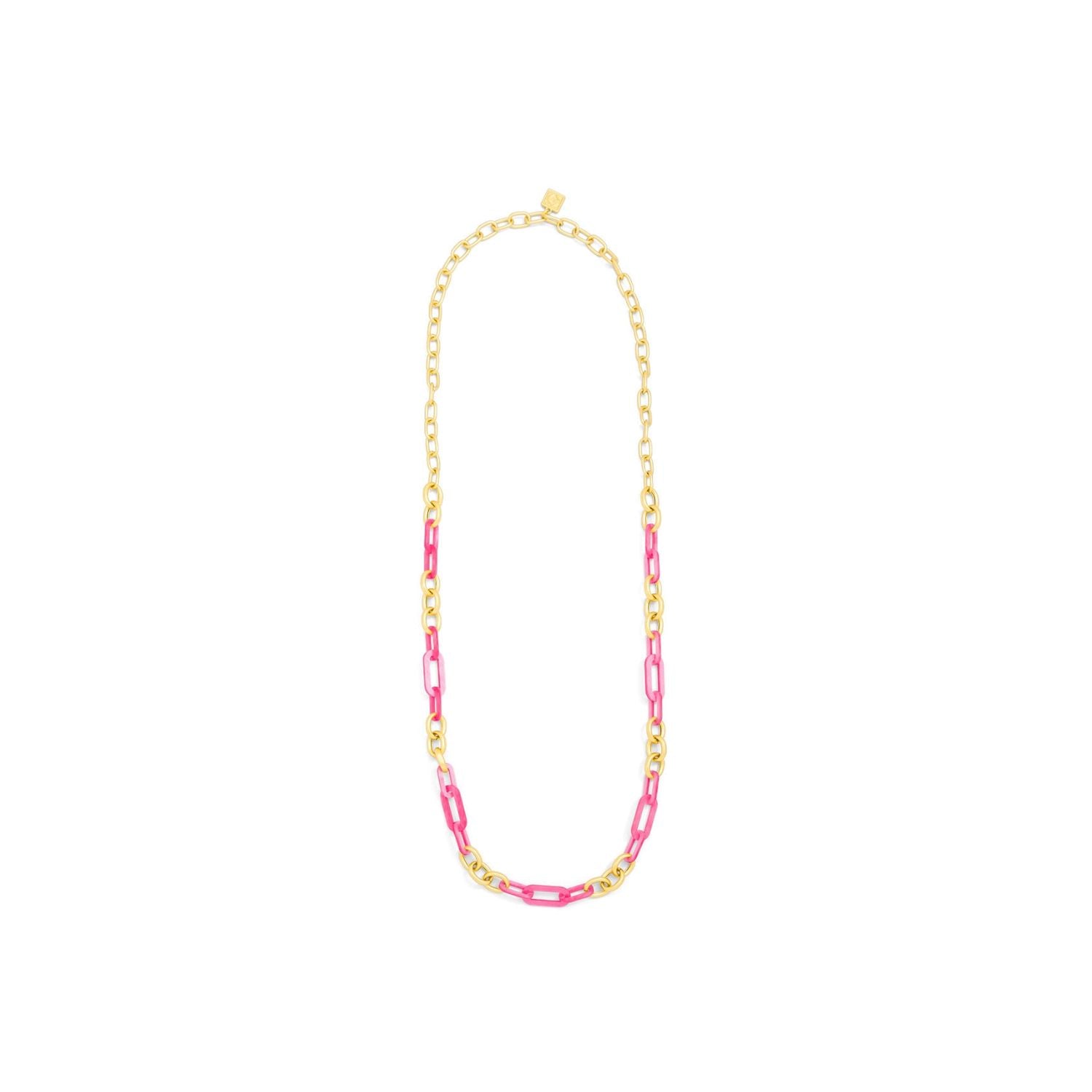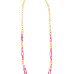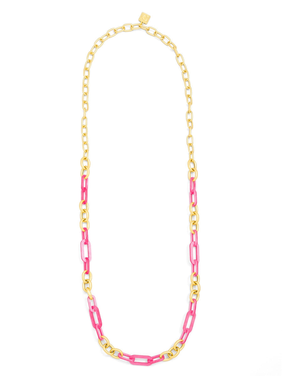 Long necklace made with alternating colorful resin and 18K gold-plated links.