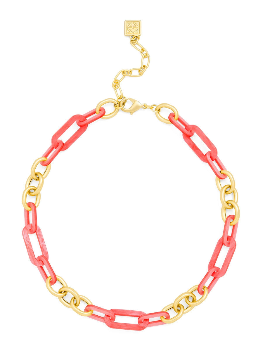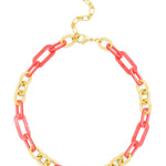 Collar necklace made with alternating colorful resin and 18K gold-plated links.
