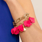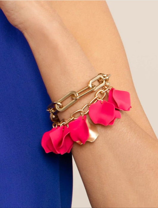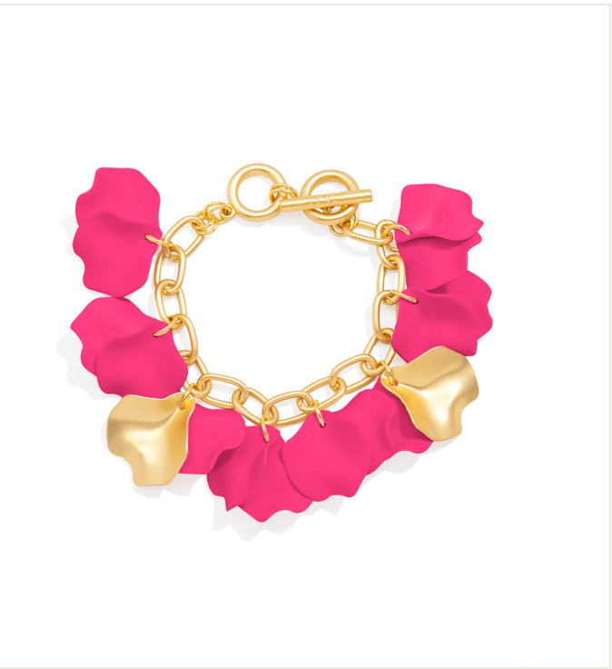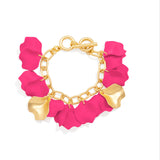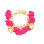 18K gold-plated link bracelet with toggle closure featuring colorful matte resin petals and two 18K gold-plated matte petal accents.