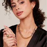 18K gold-plated collar necklace designed with paperclip, oval, and curb chain links.