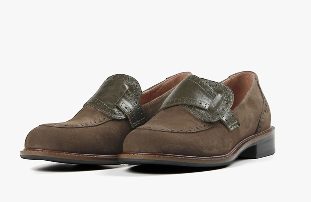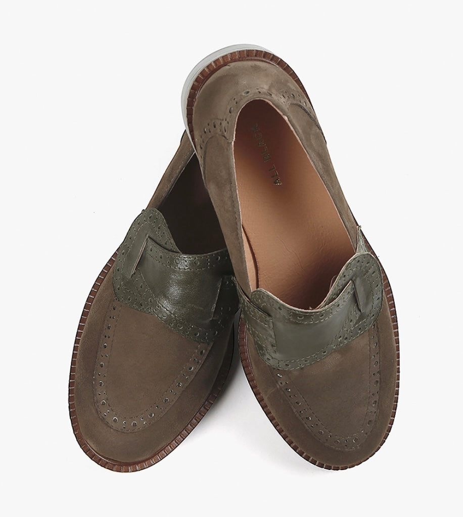 The Belted Kid Loafer from All Black features a beautiful suede and leather upper with a faux buckle across the instep.