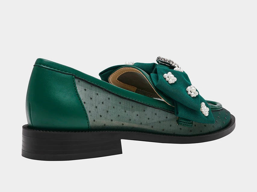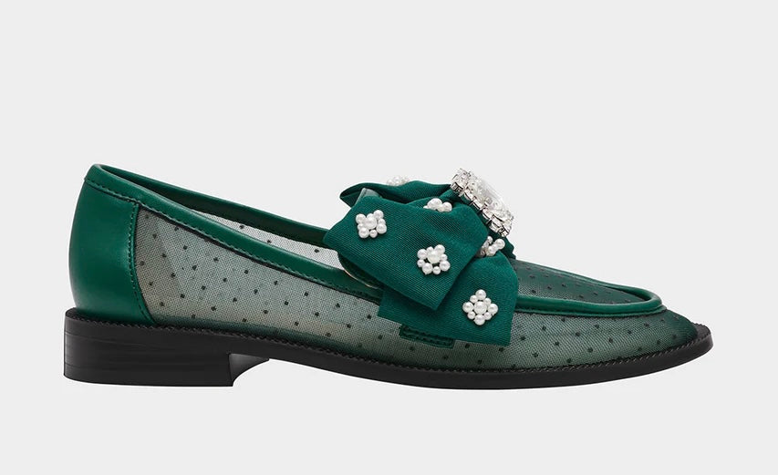 Our SETH loafer is the perfect go-to mesh flat for daily wear! Featuring a charming bow decorated with a sparkling stone and pearl accents, it’s sure to be your new favorite closet essential.