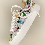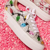 Put a little sparkle in your step with the SIDNY all-over rhinestone platform sneakers. These sparkly sneakers can be paired with your best dress or favorite jeans, offering a combination of glamour and stylish comfort. The SIDNY rhinestone shoe is available in a variety of captivating colors and prints to make any look a little more luxurious!