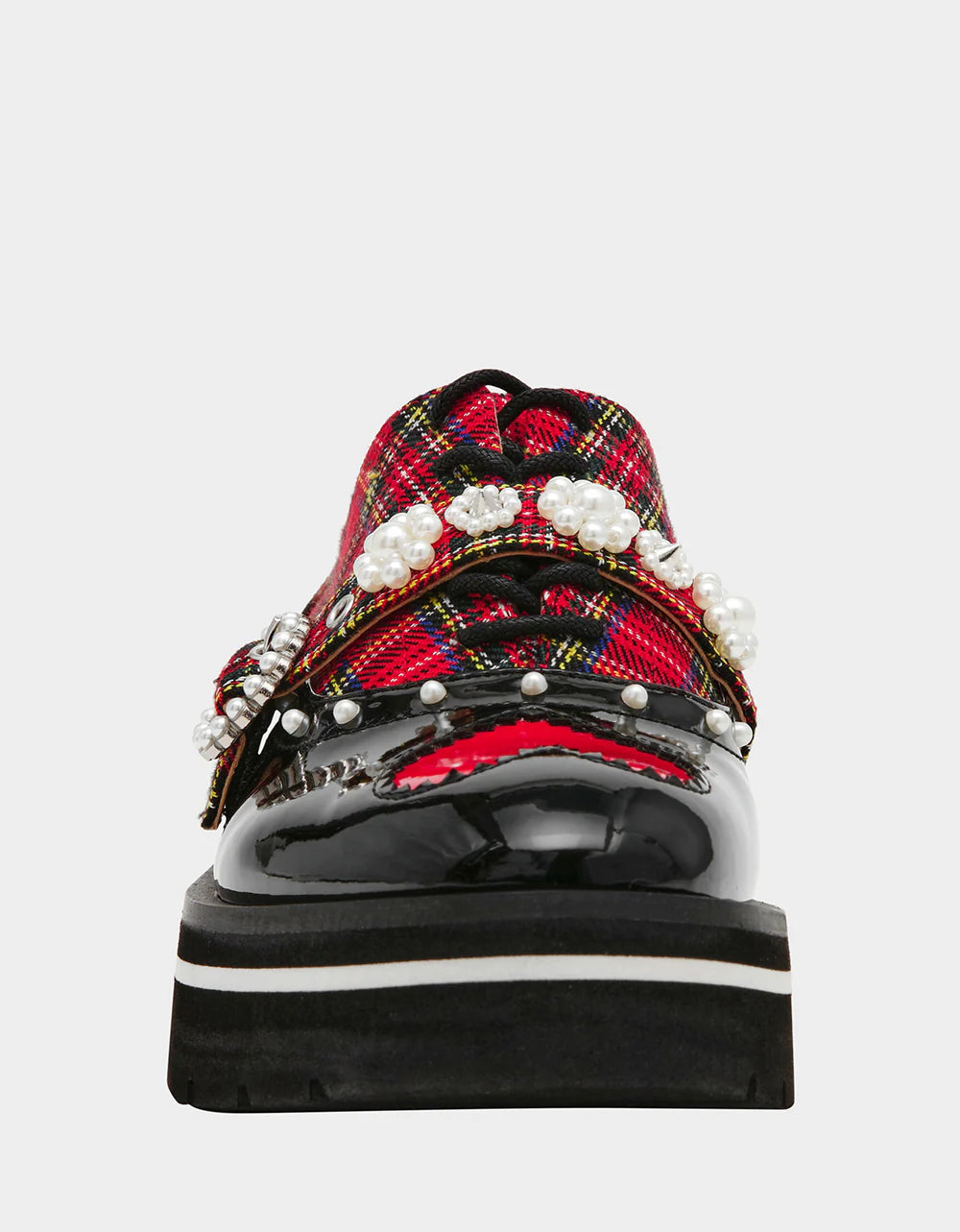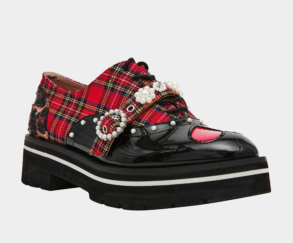 Introducing the SIMONEE - a lace-up oxford loafer with a stylish twist. The pearl embellishments add a touch of elegance, while the unique leopard and plaid print add a playful pop of personality. Step up your shoe game with these quirky and fun loafers!