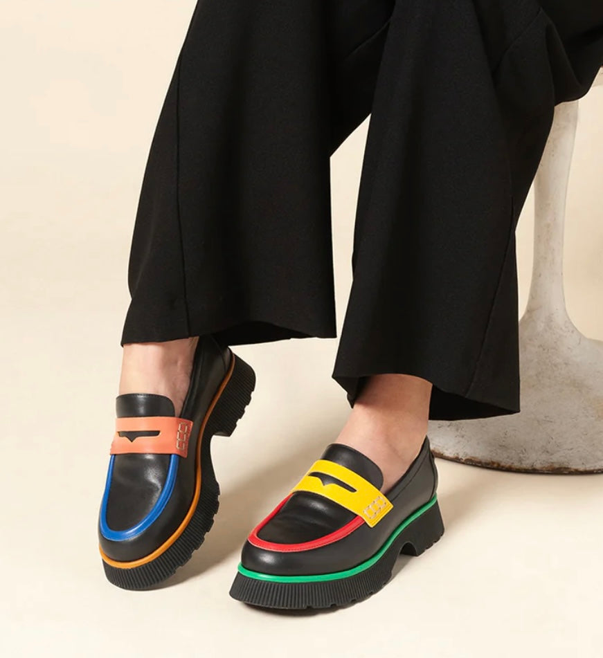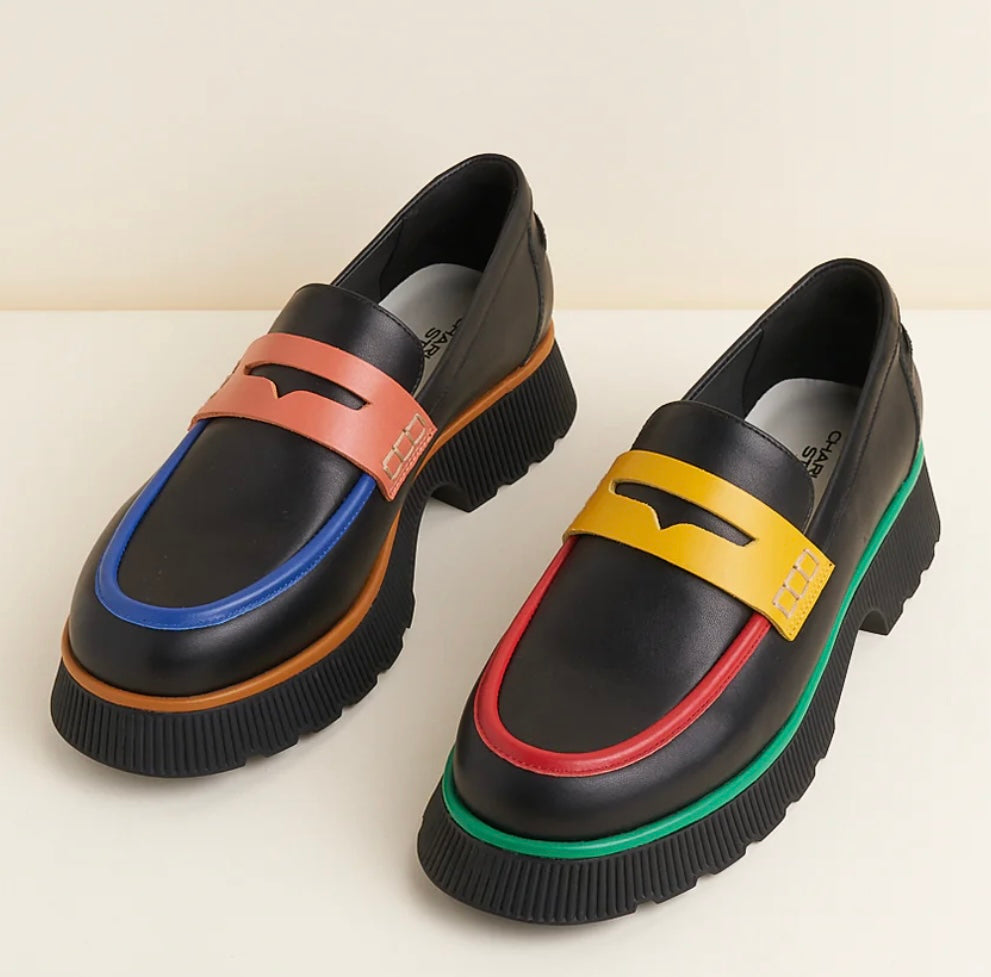 A loafer made cool and current with our signature colorful leather and flared rubber outsoles.