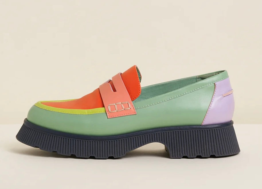A loafer made cool and current with our signature colorful leather and flared rubber outsoles.