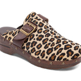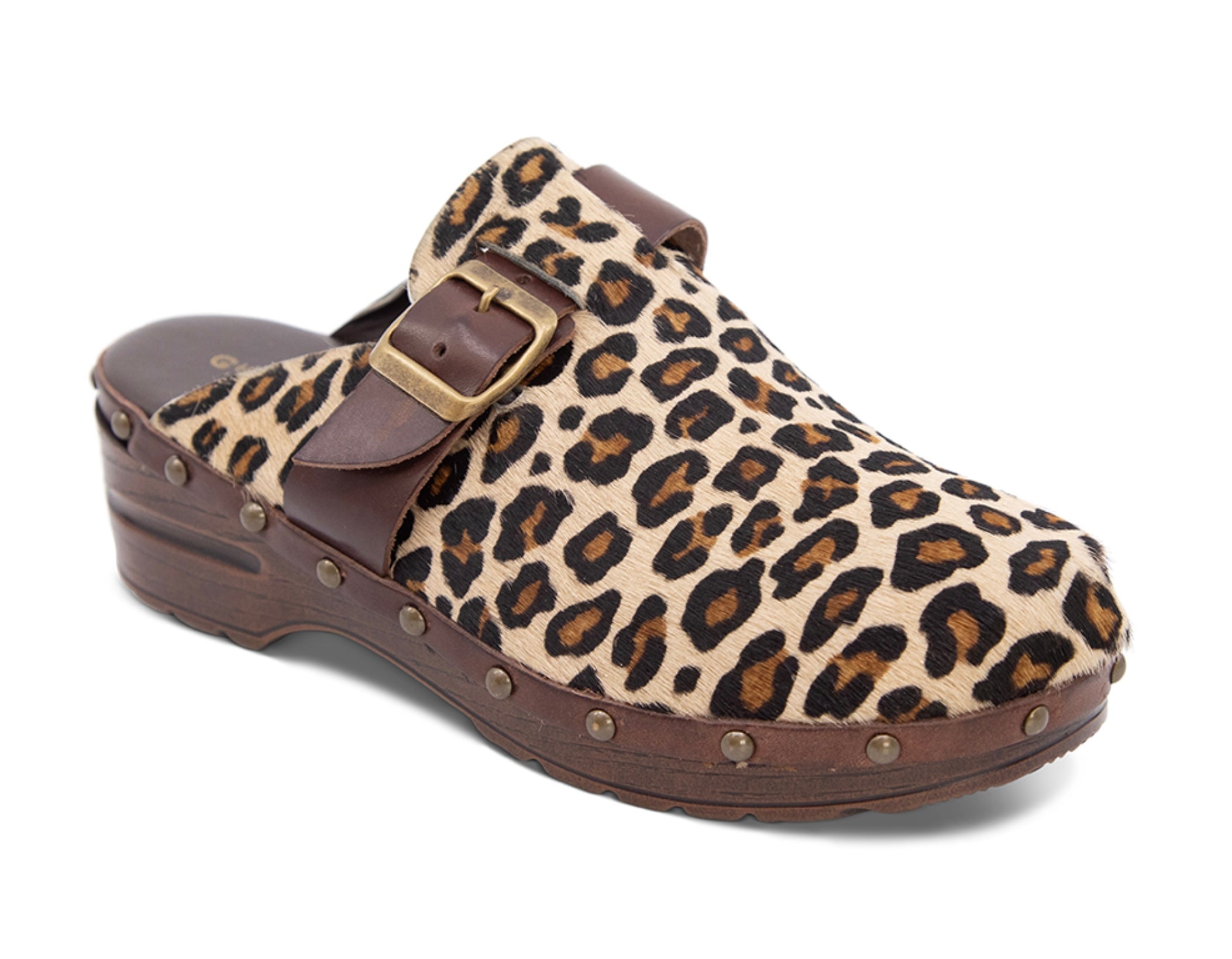 The Yuna Clog from Chocolat Blu feature a comfortable and supportive footbed, a buckle across the instep, and a fashionable hair-on calf upper.