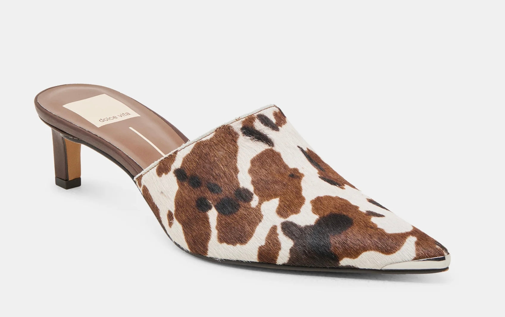 LEXY adds instant polish. This metal toe-capped mule features a heel at a comfortable yet ultra chic height. Find a pair for every look—from understated neutrals to bold cow print.
