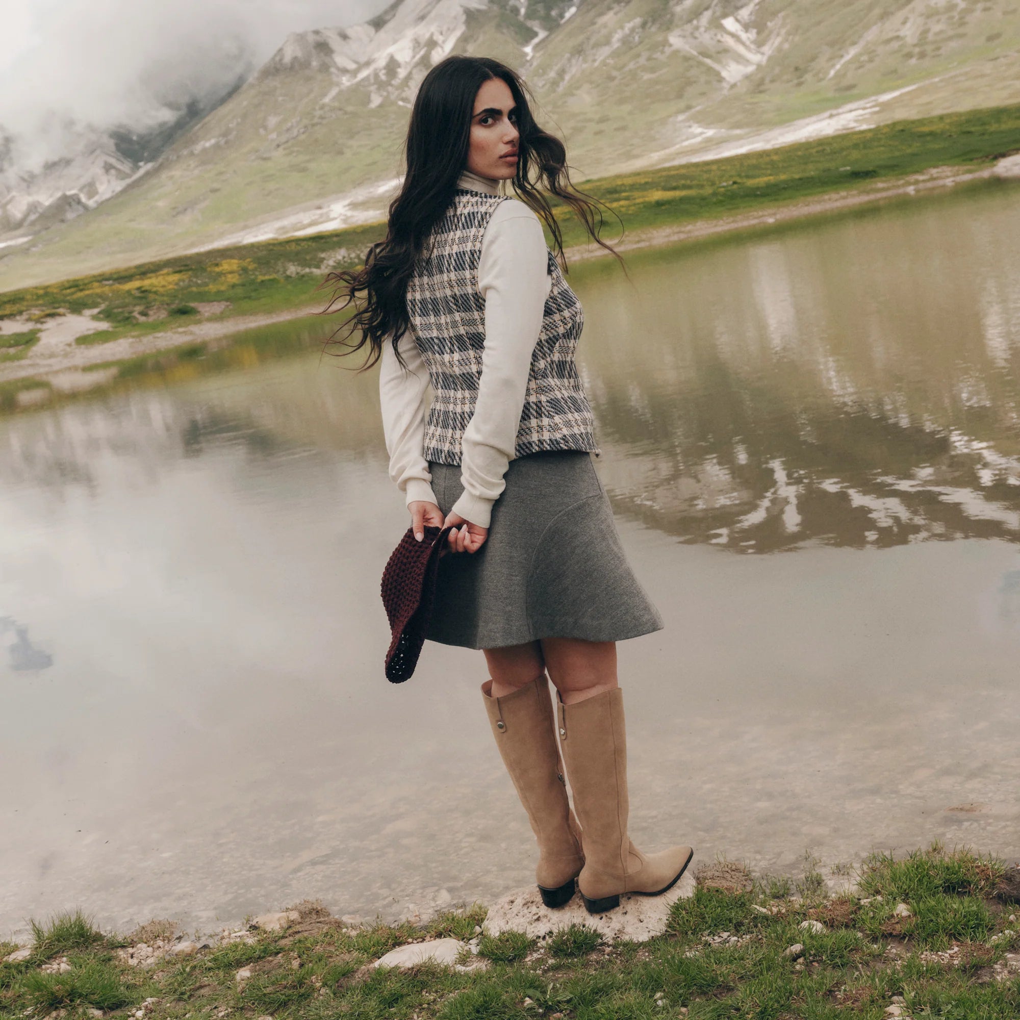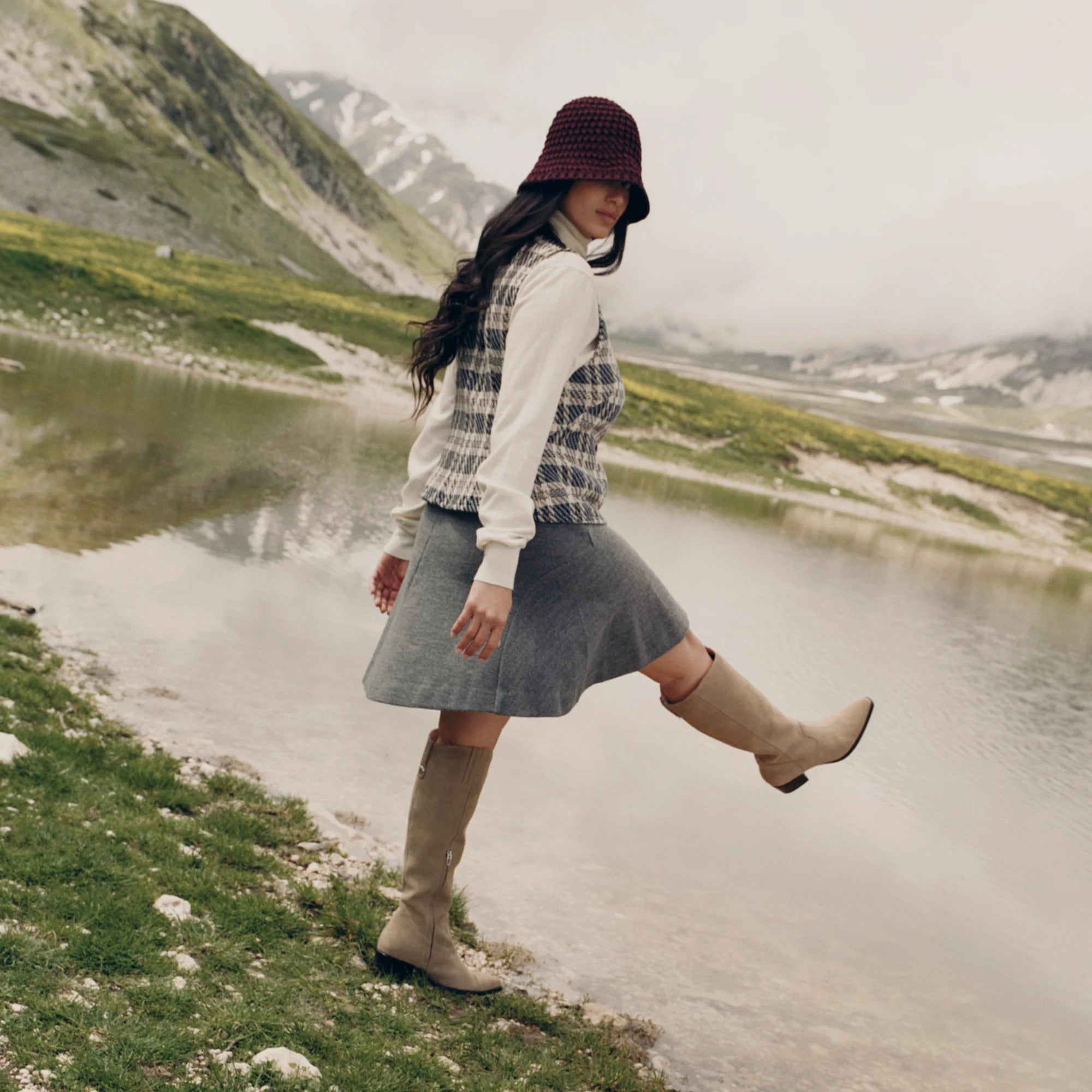 Wear VIRONA H2O’s timeless and flattering design this year and next. Crafted using recycled materials, this tall waterproof boot’s stacked block heel and curved top add a chic upgrade to denim and dresses. Wear neutral suedes out in any weather.