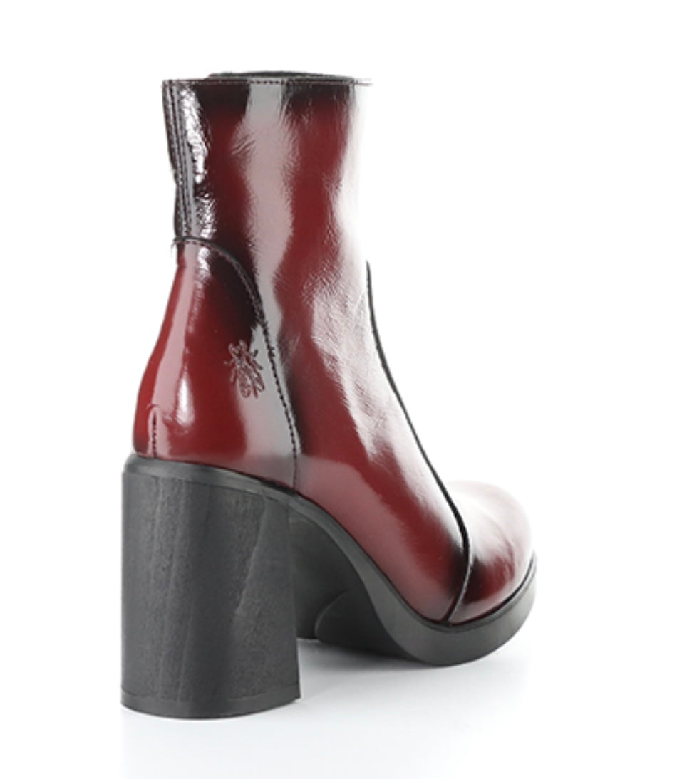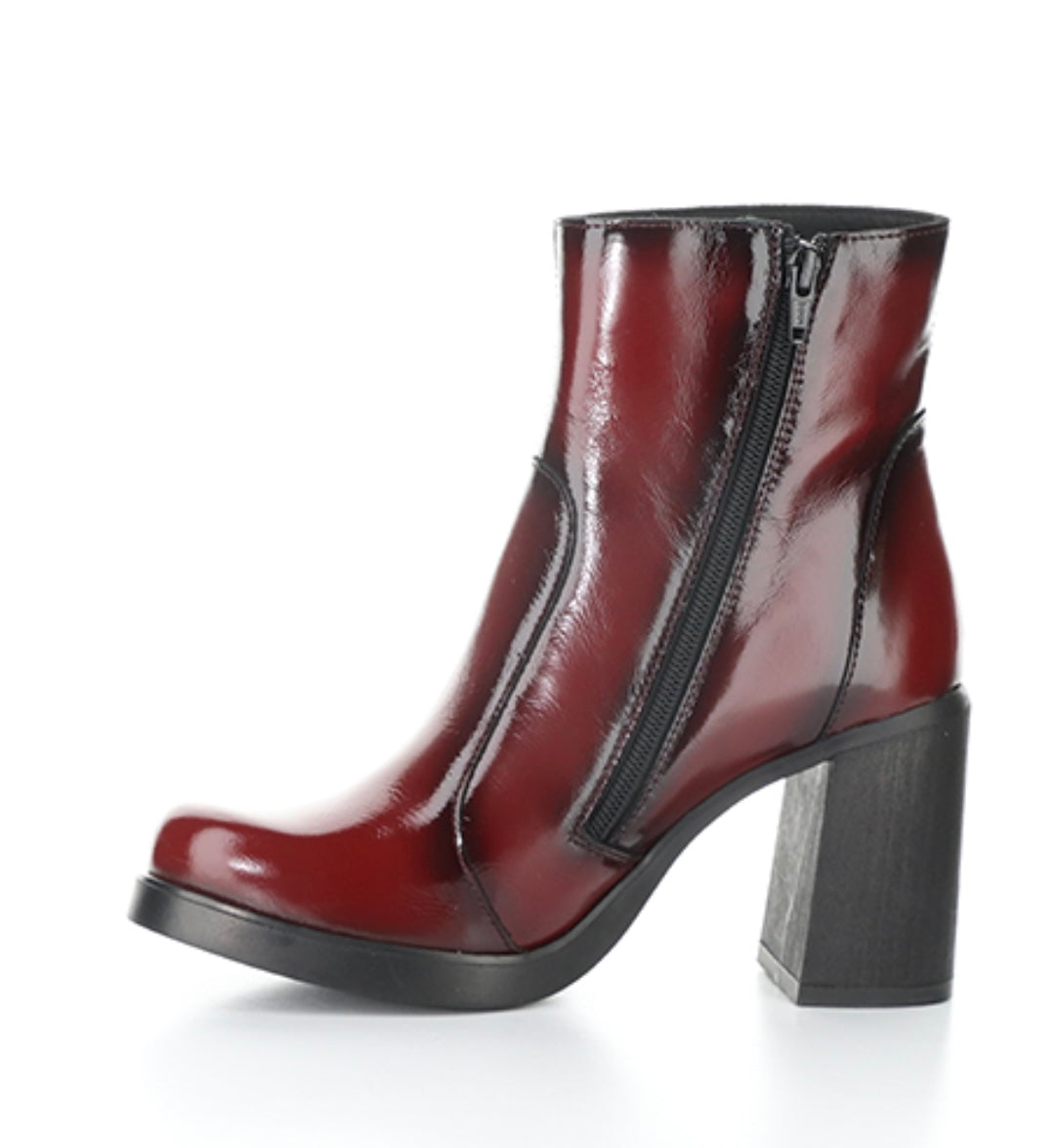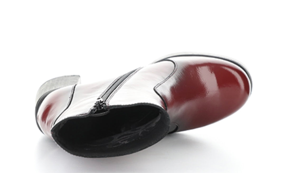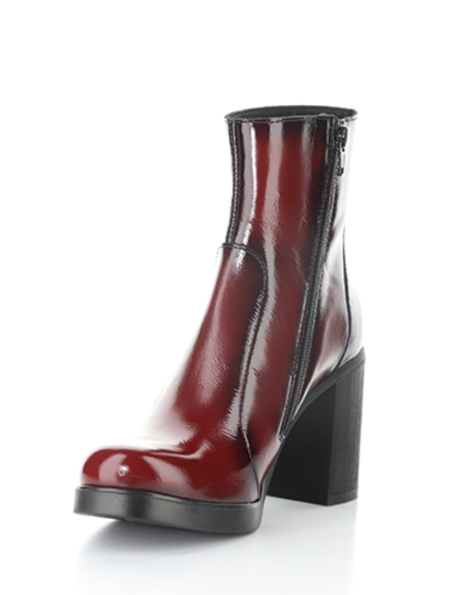 Command the day in this sleek patent-leather boot fashioned in a round-toe silhouette that's boosted by a dramatic block heel.