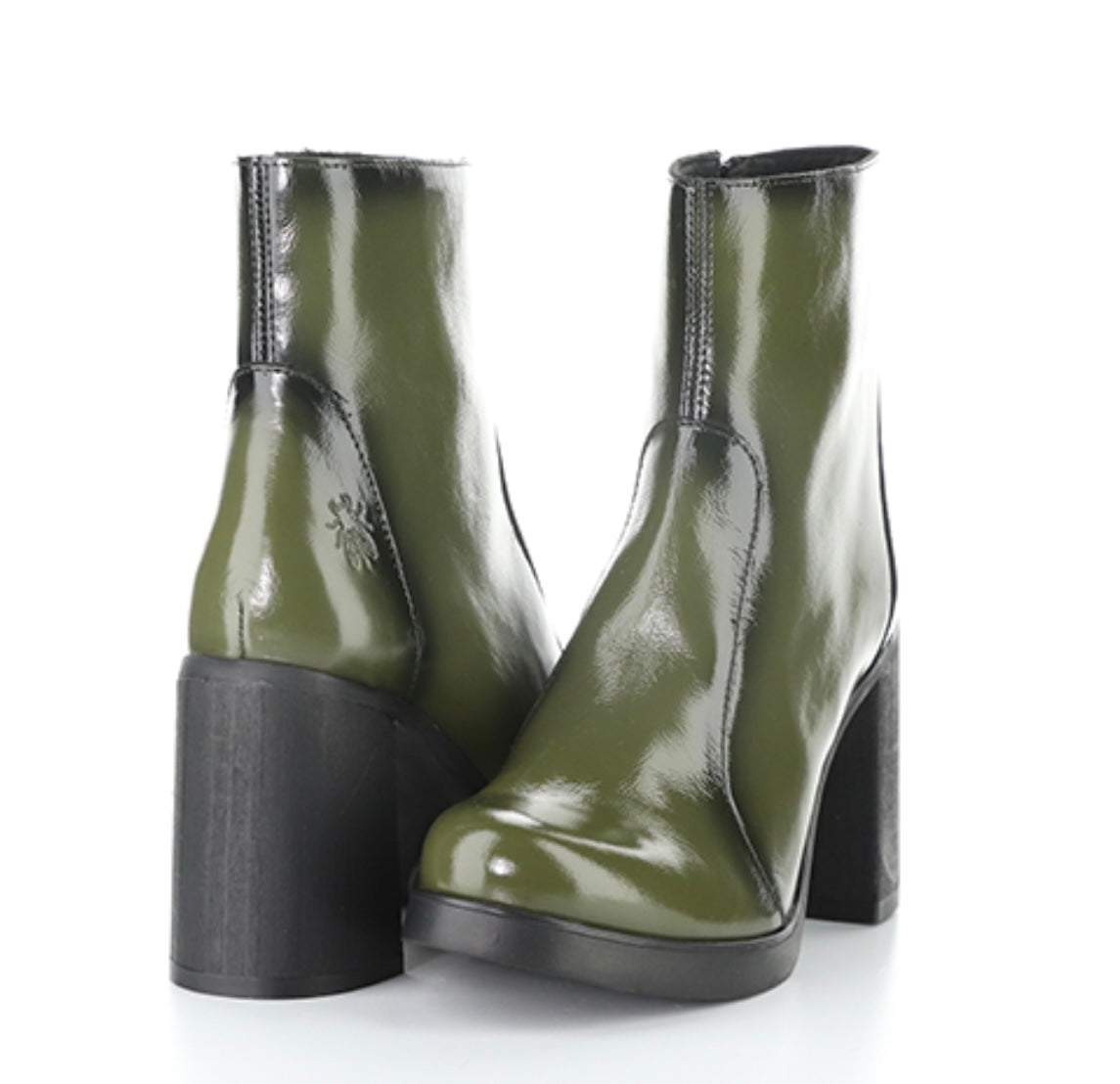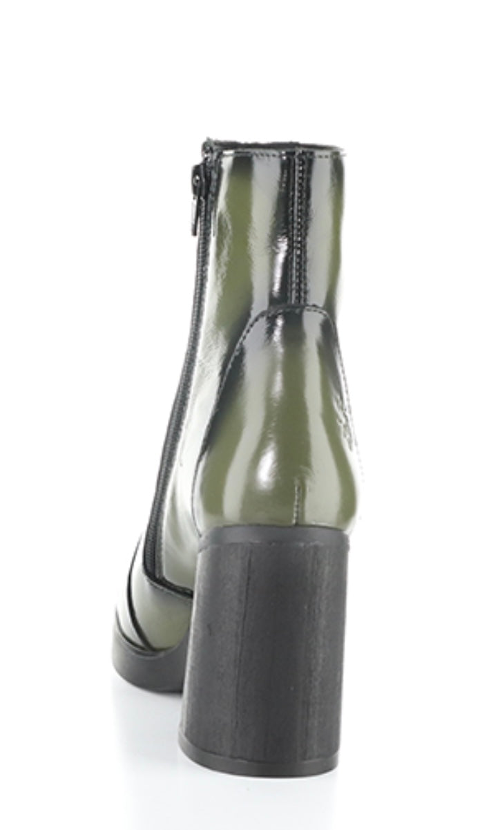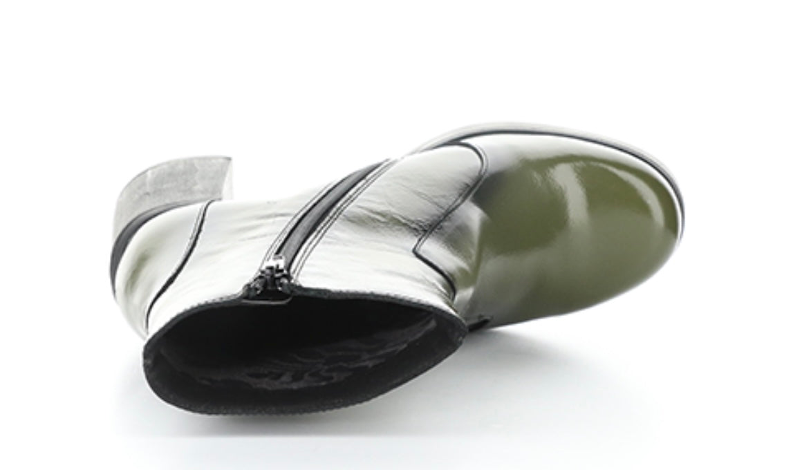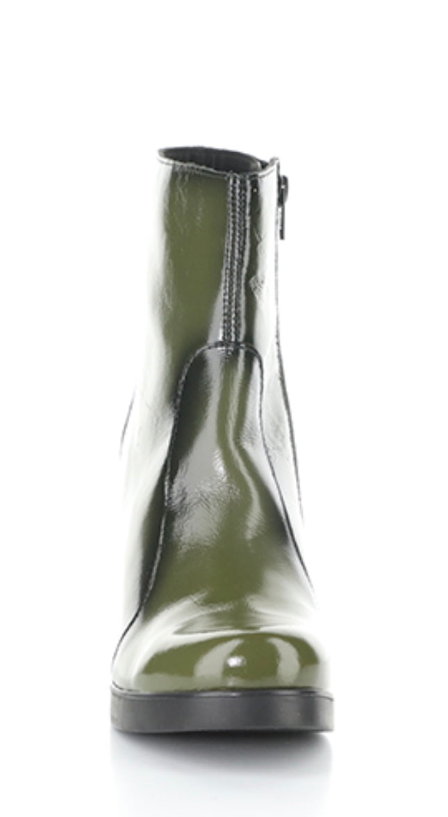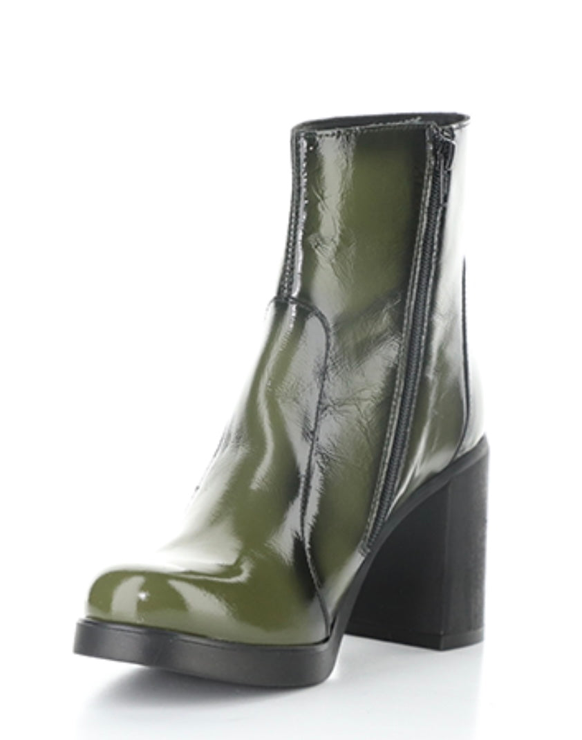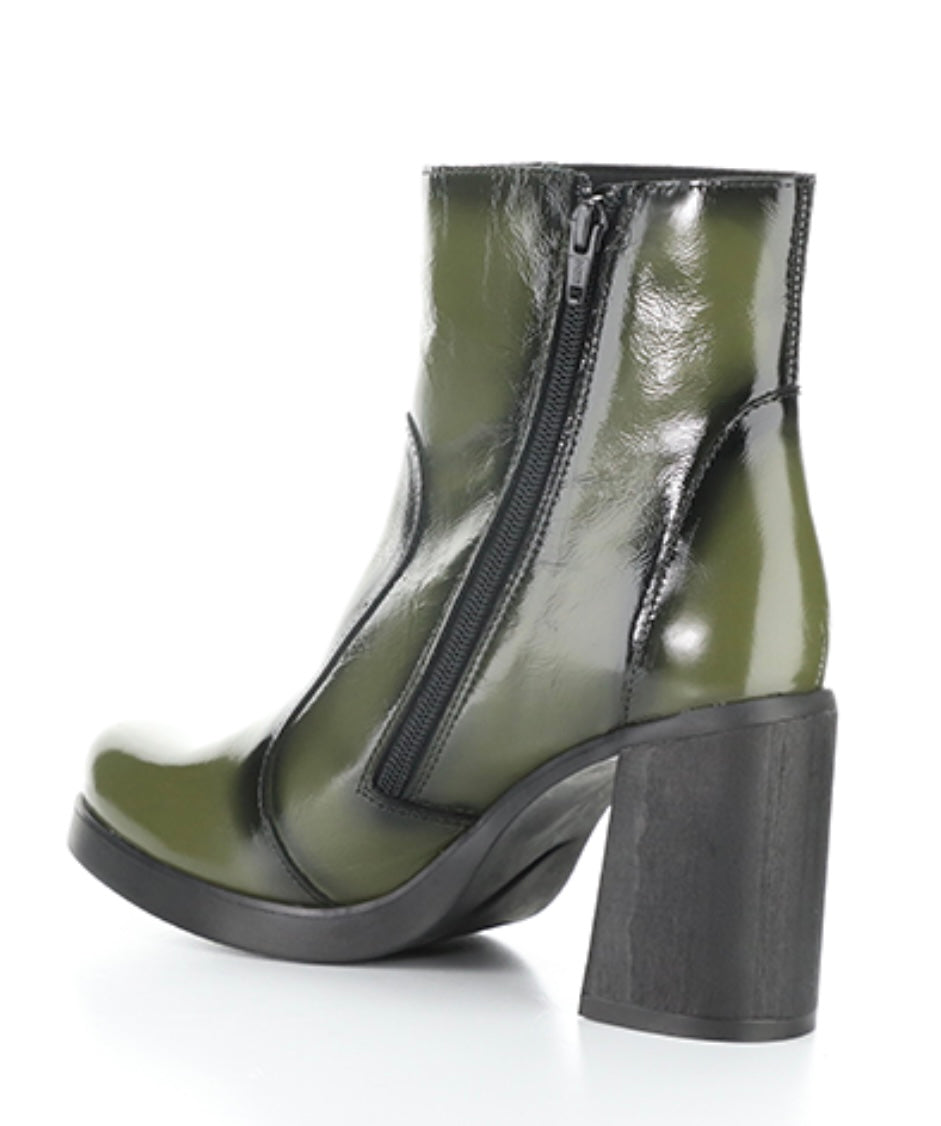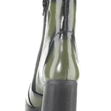 Command the day in this sleek patent-leather boot fashioned in a round-toe silhouette that's boosted by a dramatic block heel.