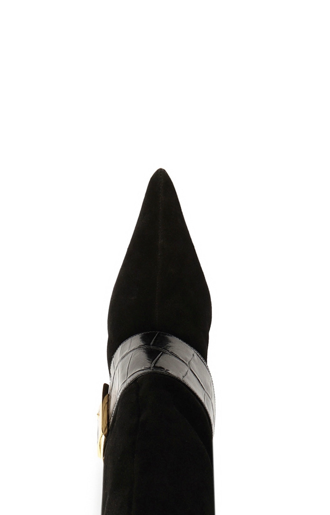 The Beatrix boot from Schutz gives the dress boot an update! Featuring a luxurious suede upper, an oversized buckle around the ankle, and a pointy toe, this boot is sure to turn heads.