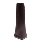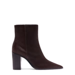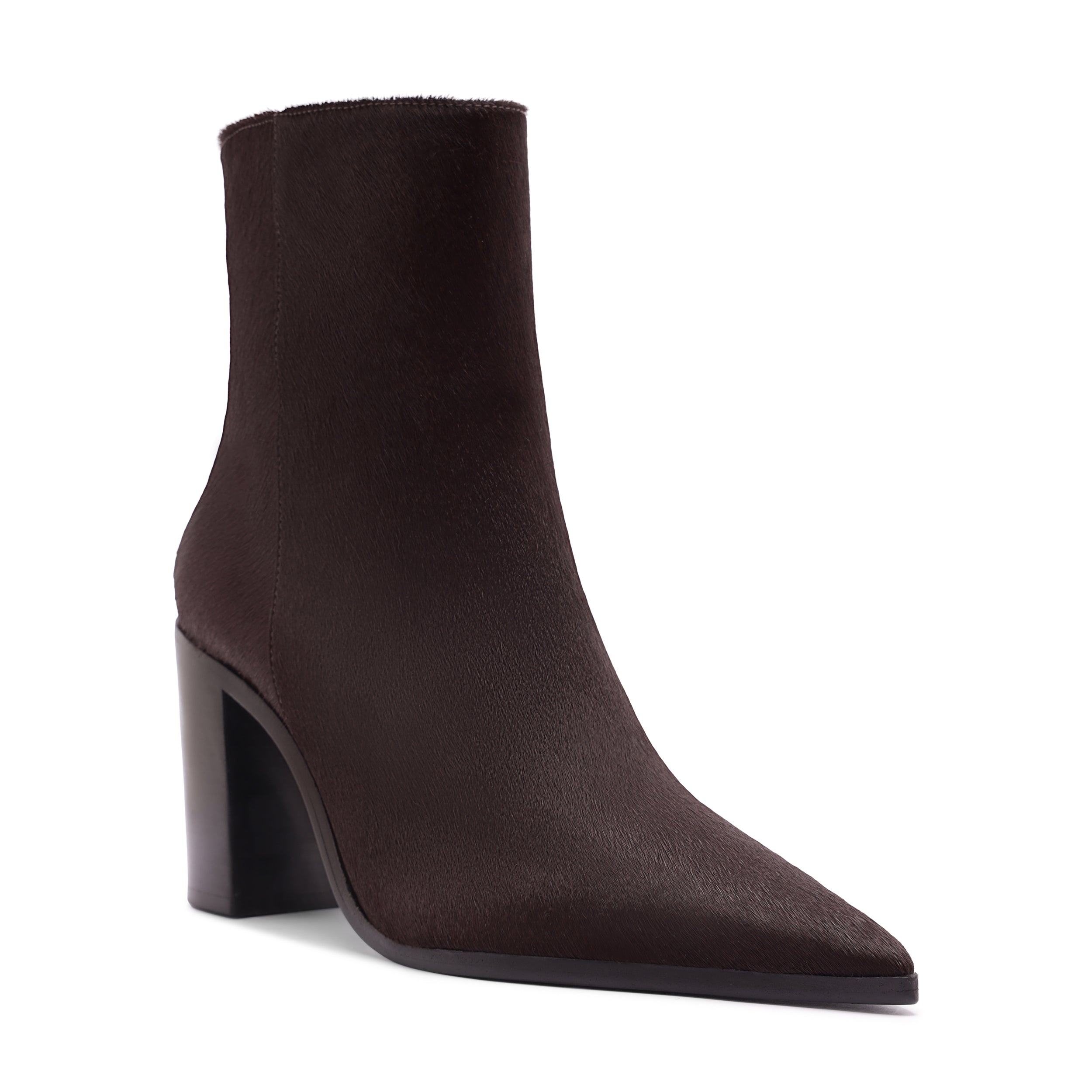 The Mikki Block Bootie from Schutz features classic styling, hair-on calf upper, and a pointy toe.