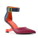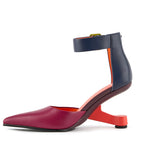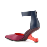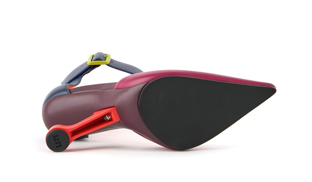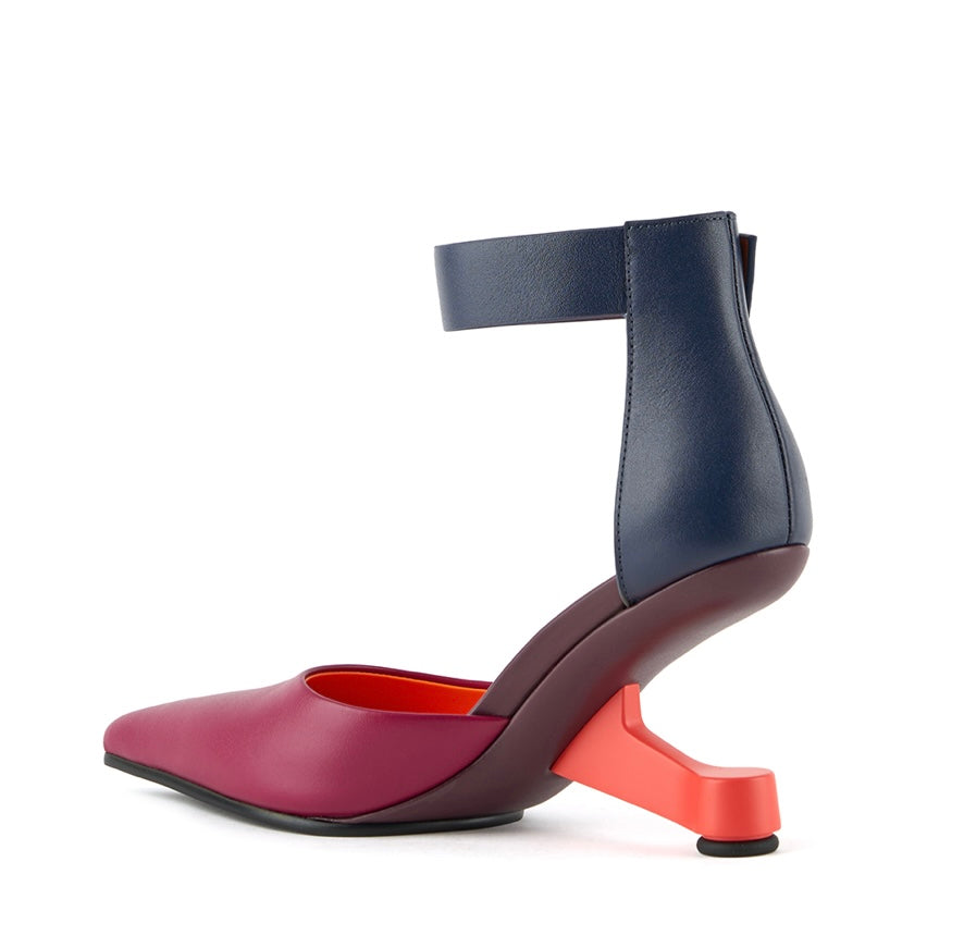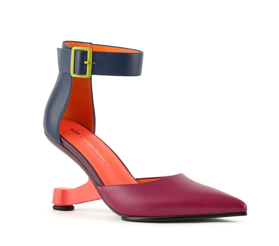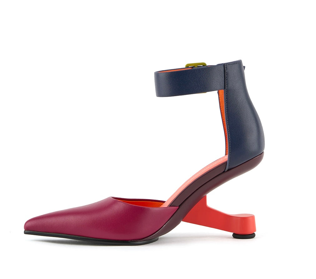 The Eamz Dorsey is a pointed-toe high heel pump with a sleek dorsey upper, a low-cut vamp, and adjustable ankle strap. The Eamz heel is inspired by the sleek, modern aesthetic and innovative use of materials found in Charles and Ray Eames' iconic designs. Its distinctive, aluminum-casted structure creates a floating effect that makes the wearer appear suspended above the ground.