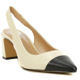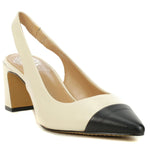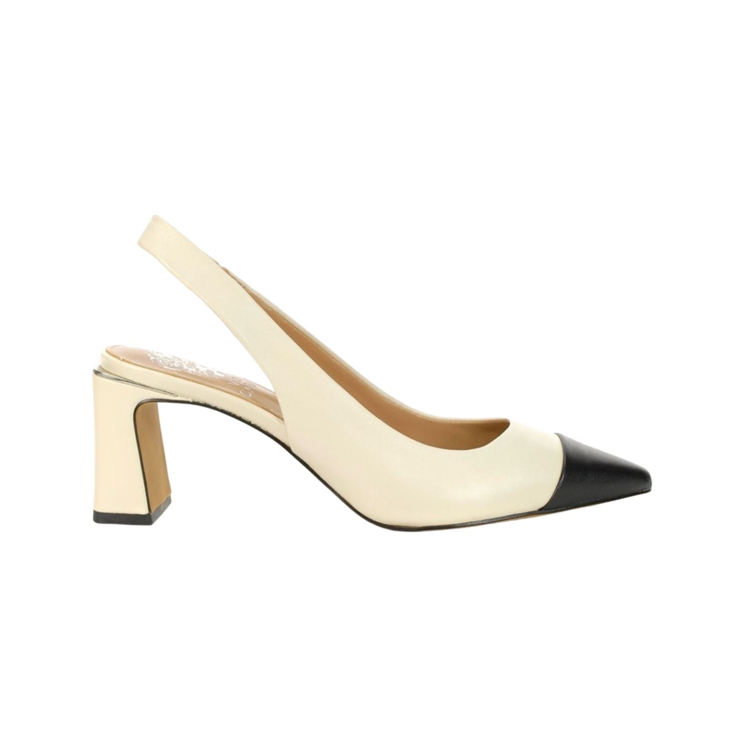 leather sling back pump heel in white and black from Vince Camuto front side profile