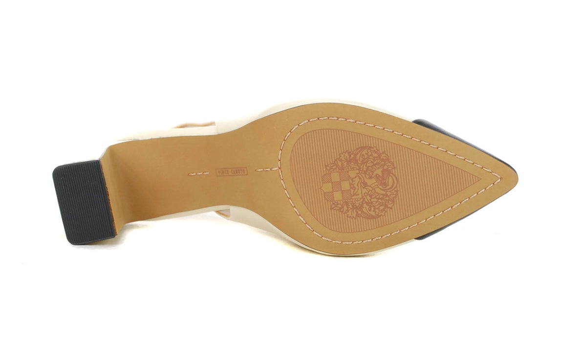 leather sling back pump heel in white and black from Vince Camuto bottom view