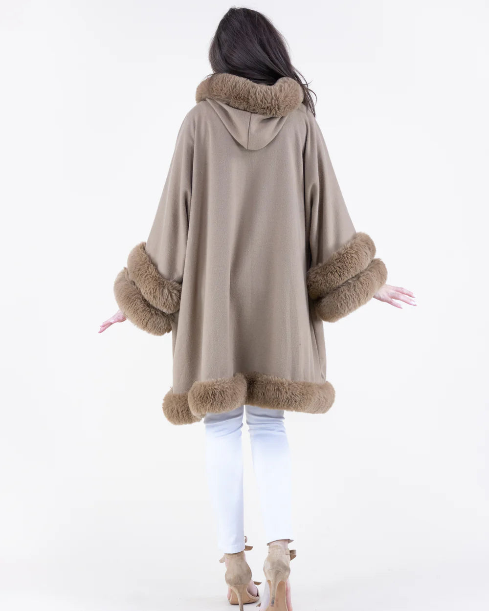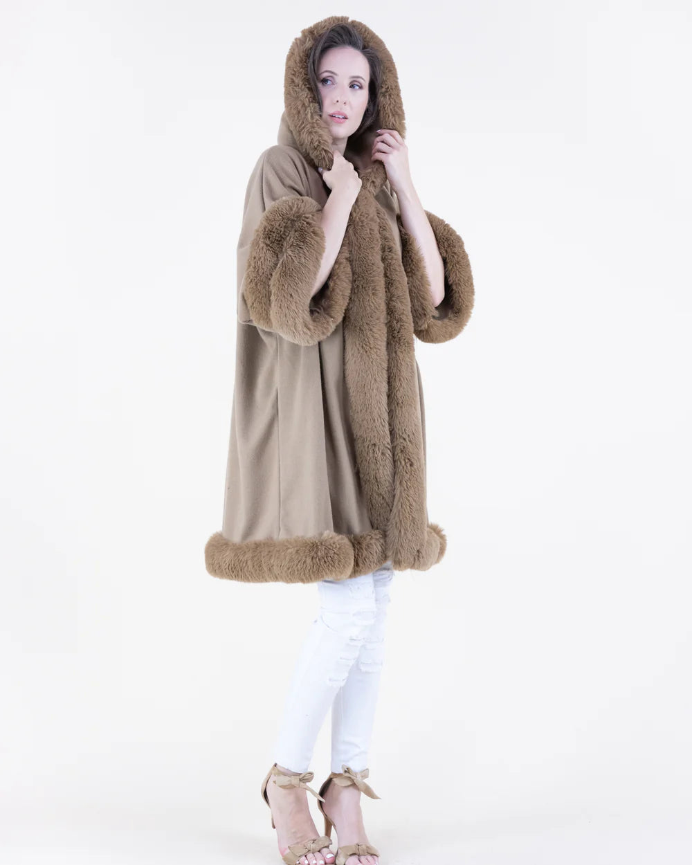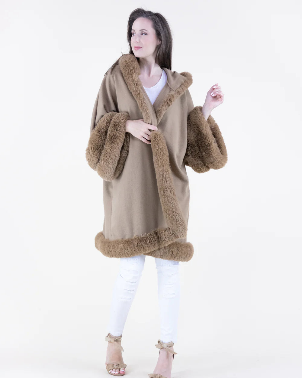 Original USA Double Faux Fur Trim Cuff Hooded Coat