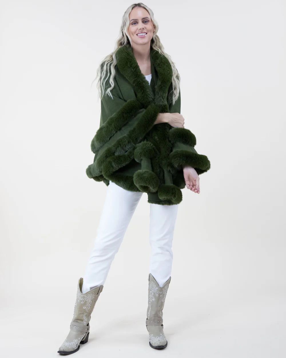 Original USA Double Layered Faux Fur Cape with Hoodie