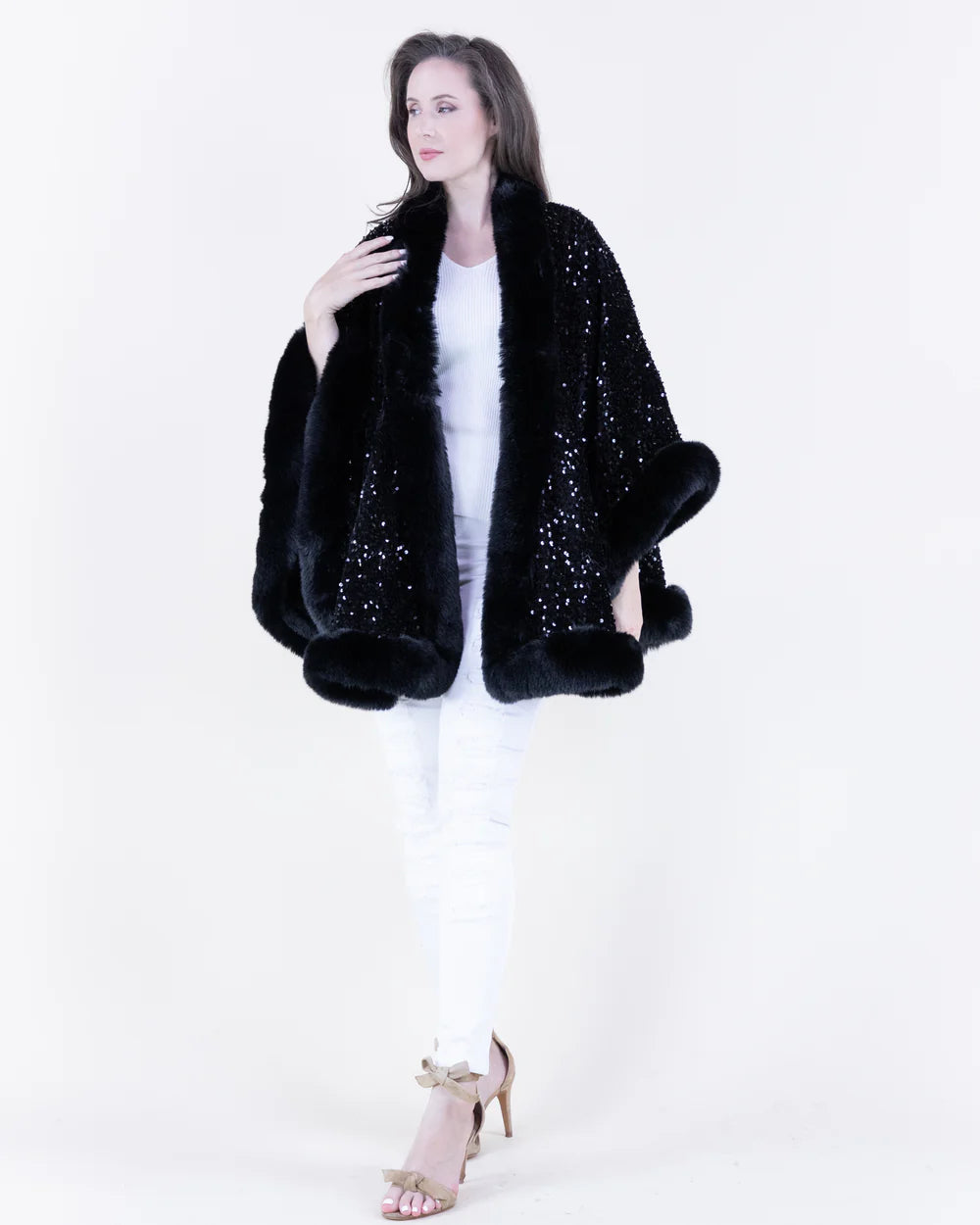Warm and Stylish Faux Fur Trimmed Sequin Cape