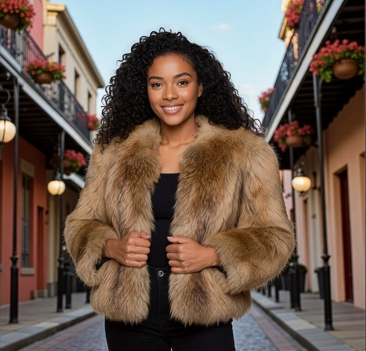 This beautiful jacket from Chosen Furs features luxurious all natural fox fur.
