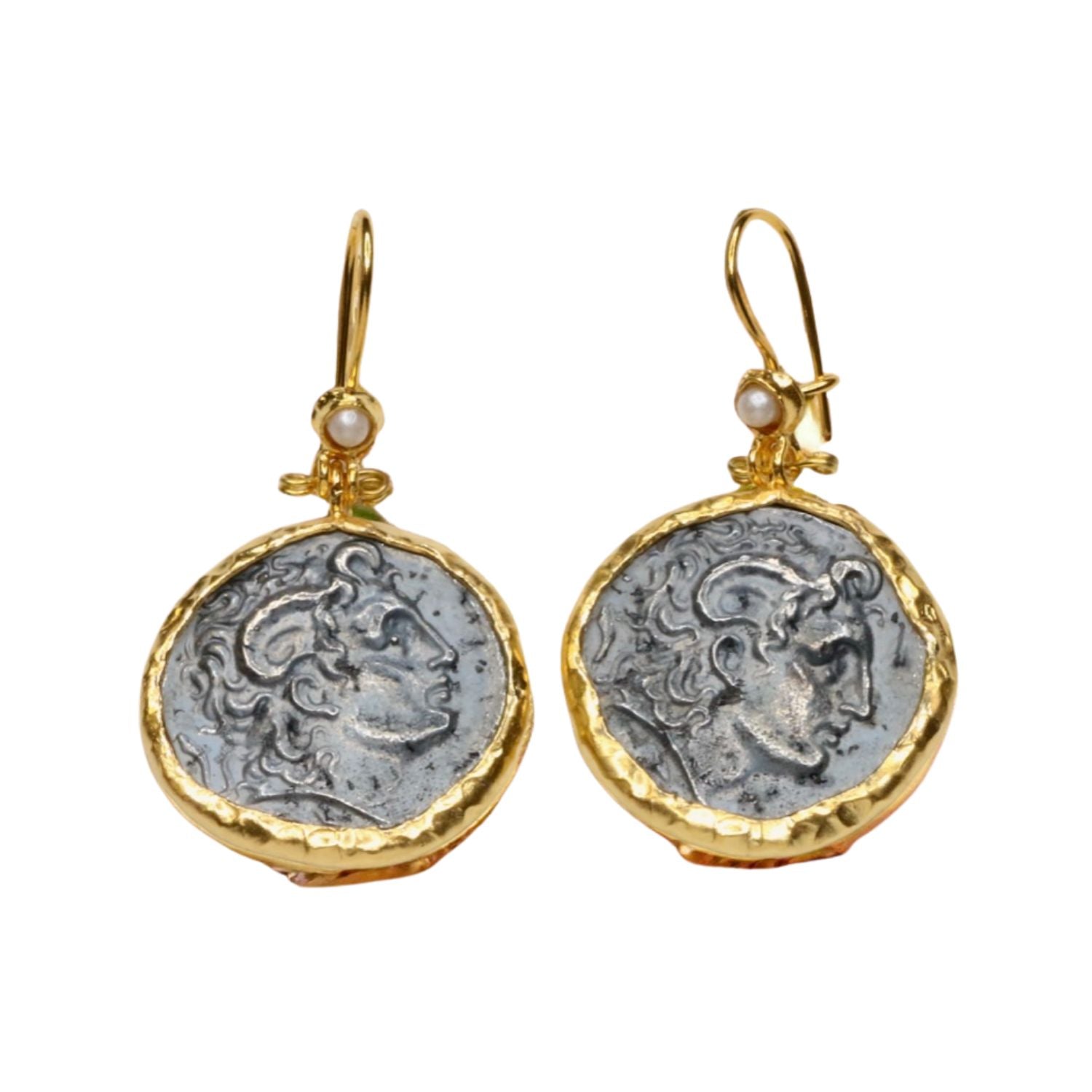 Ancient Bazaar Gold Plated Brass Coin Earrings