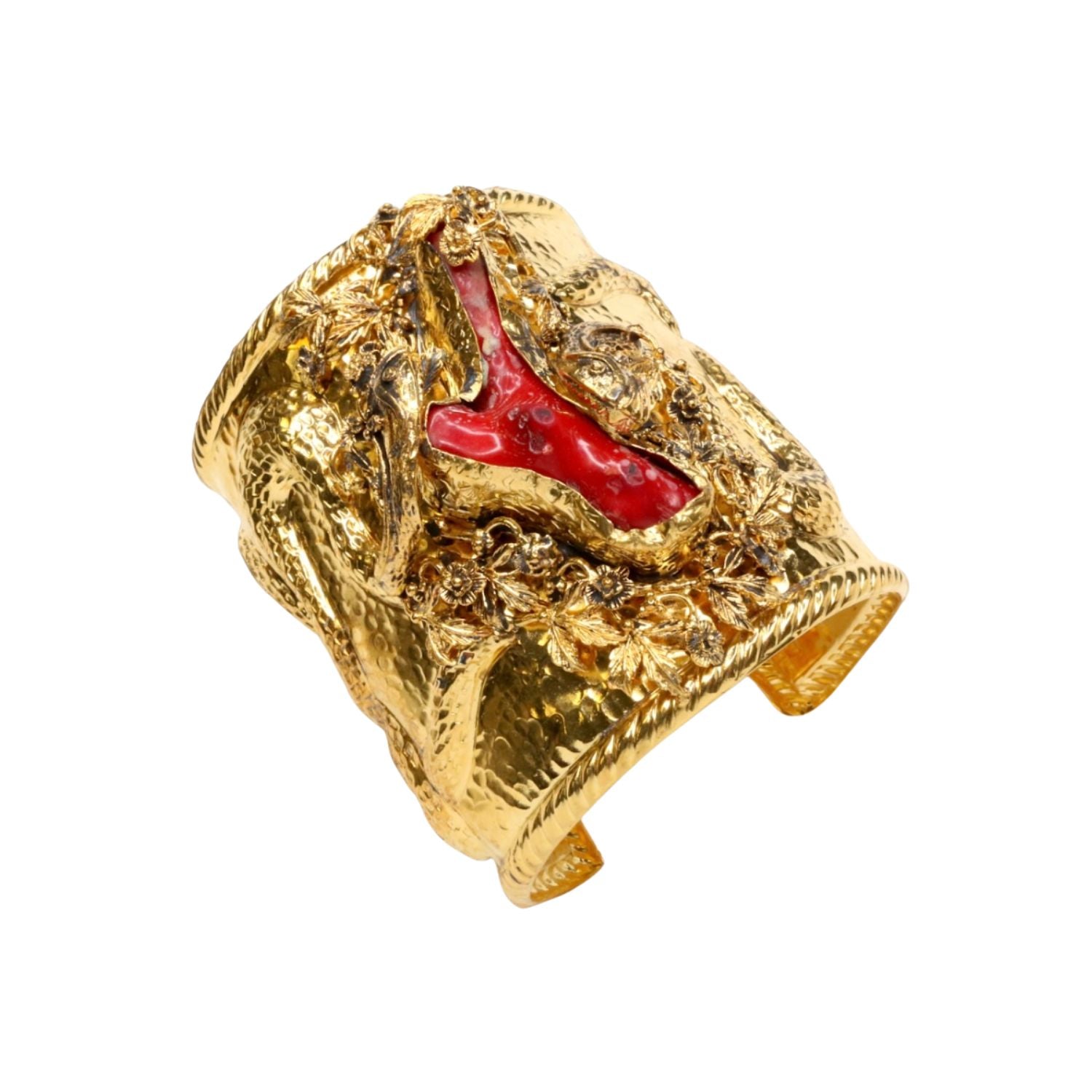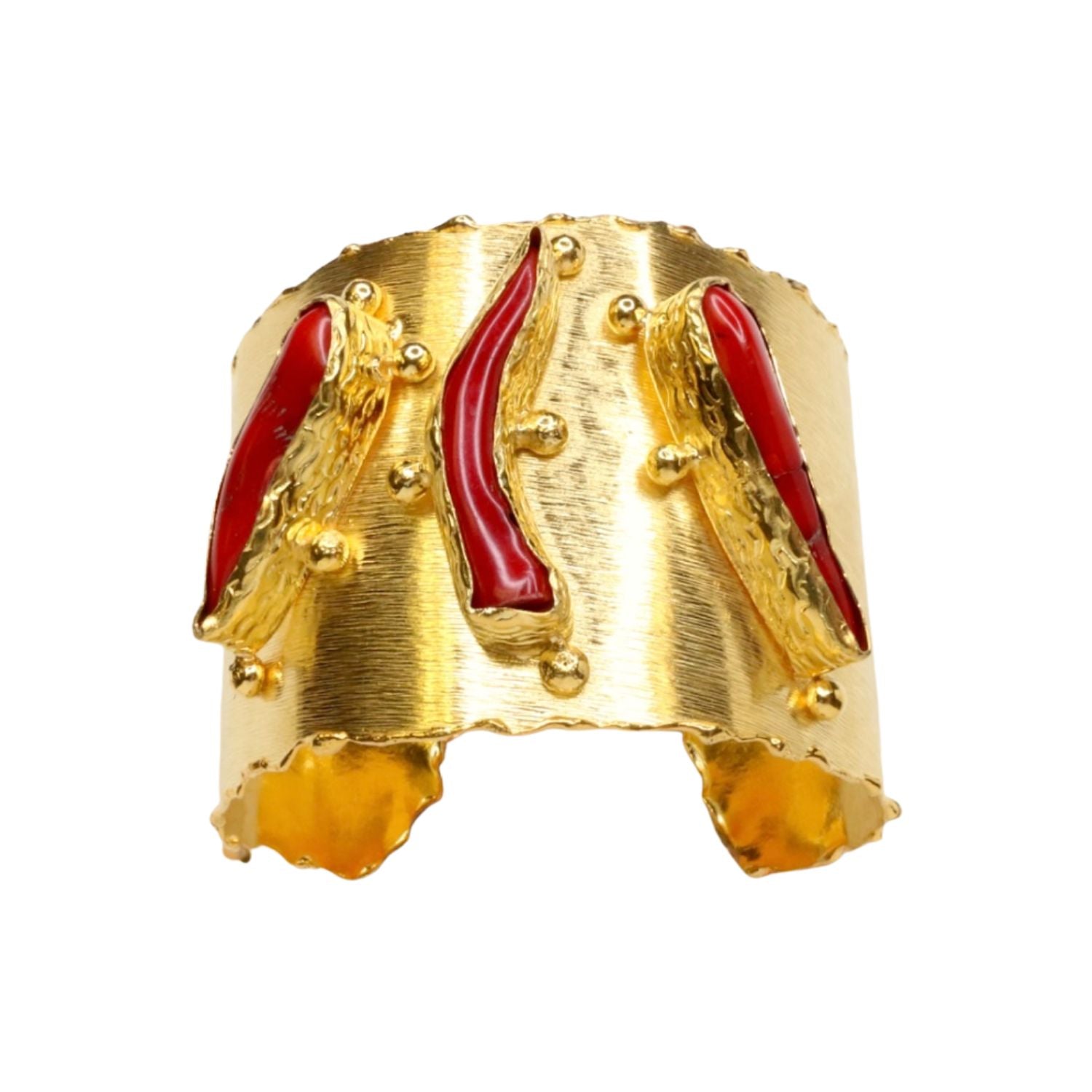 Ancient Bazaar Gold Plated Brass Cuff with Coral