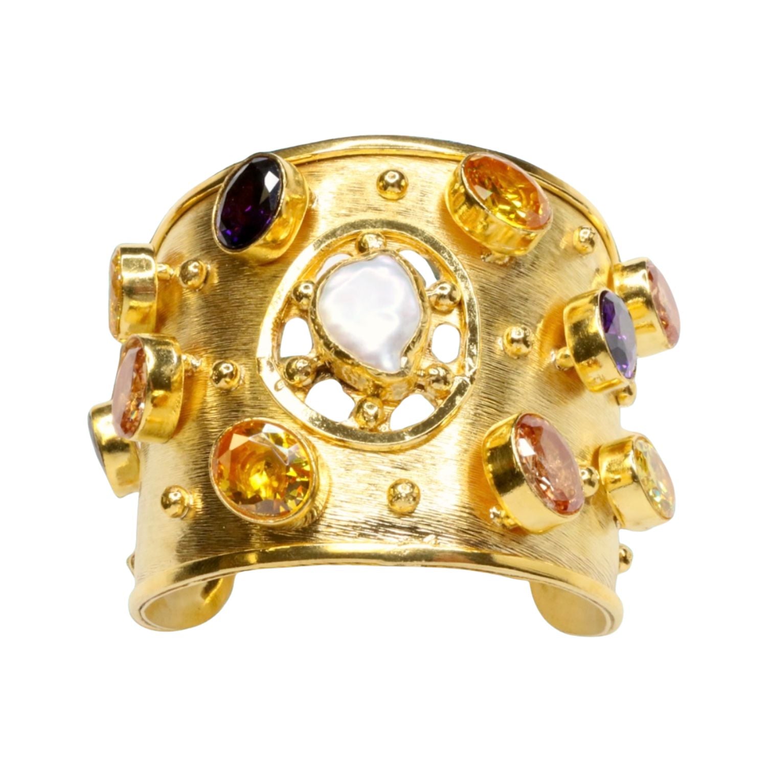 Ancient Bazaar Gold Plated Brass Cuff with Mother of Pearl