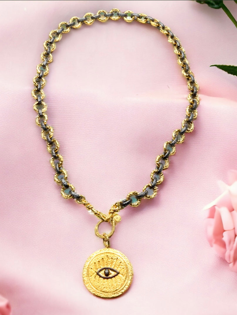 This beautiful necklace features gold plated brass and an eye charm pendant. Handmade in Turkey.